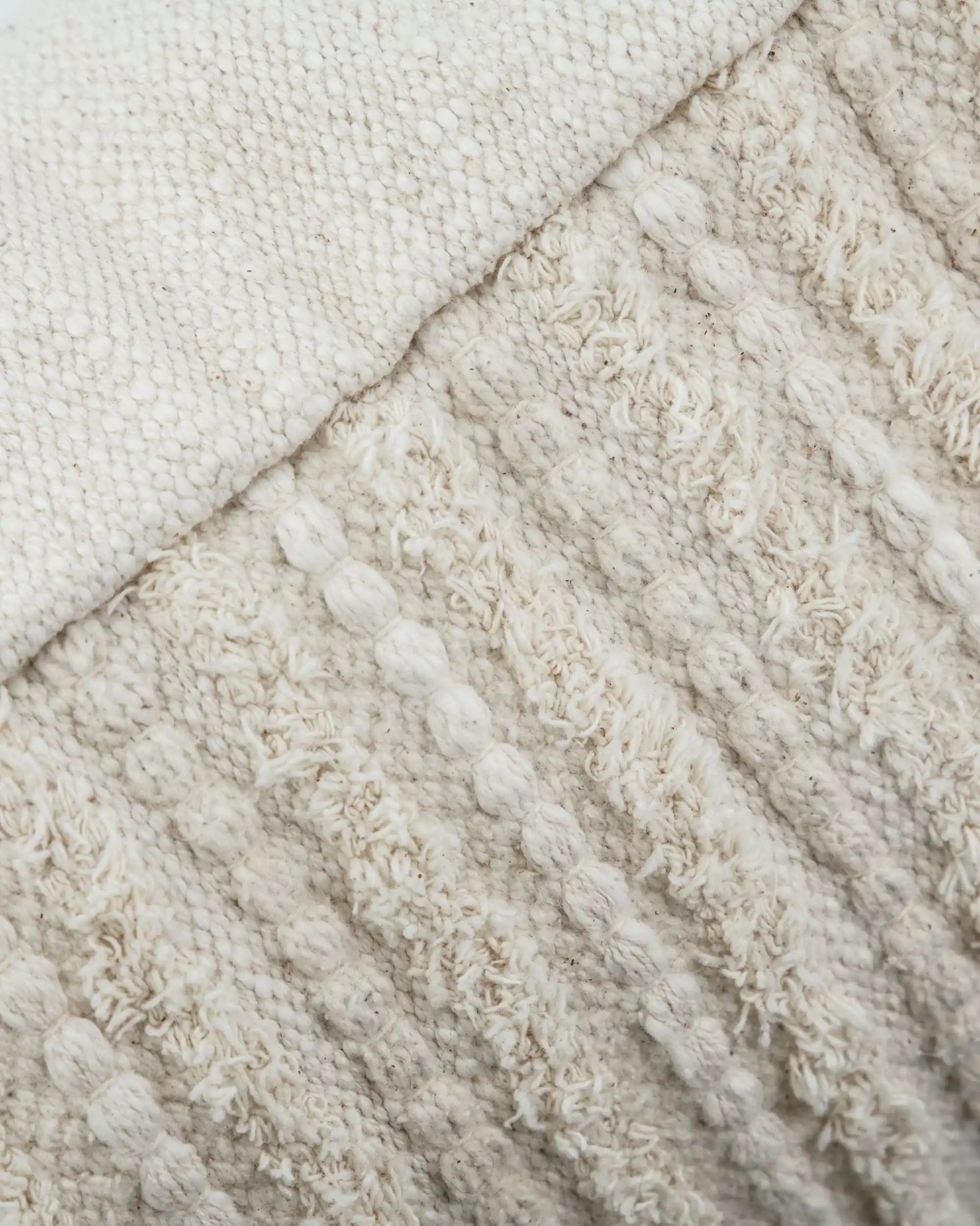Der Bezug besteht aus Baumwolle in einem warmen, gebrochenen Weißton. Mit einer Länge von 80 cm und einer Breite von 40 cm schaffst du ganz einfach Schichten auf deinem Sofa, Sessel oder Bett. Kombiniere ihn genauso gut mit anderen hellen Tönen für einen ruhigen Look oder spiele mit Kontrasten, um dem Ganzen deine persönliche Note zu verleihen.
