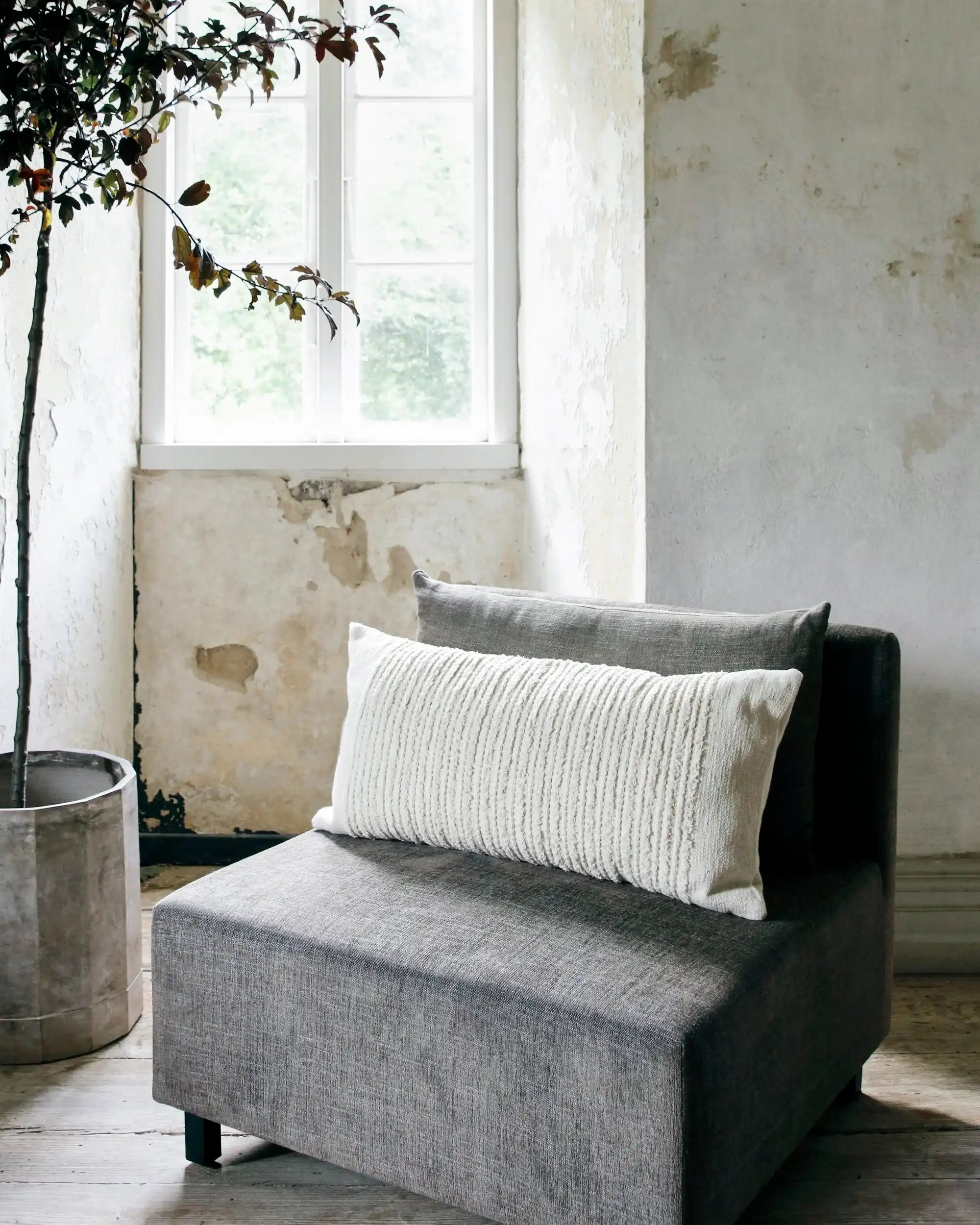 Gib deinem Wohnzimmer oder Schlafzimmer eine ruhige und elegante Basis mit dem Kissenbezug Chil. Die längliche Form macht dieses Kissen stilvoll und einladend – perfekt, um deinem Interieur eine weiche, gepflegte Ausstrahlung zu verleihen. Die dezenten tonalen Streifen sorgen für eine raffinierte Struktur und ziehen auf zurückhaltende Weise die Aufmerksamkeit auf sich.