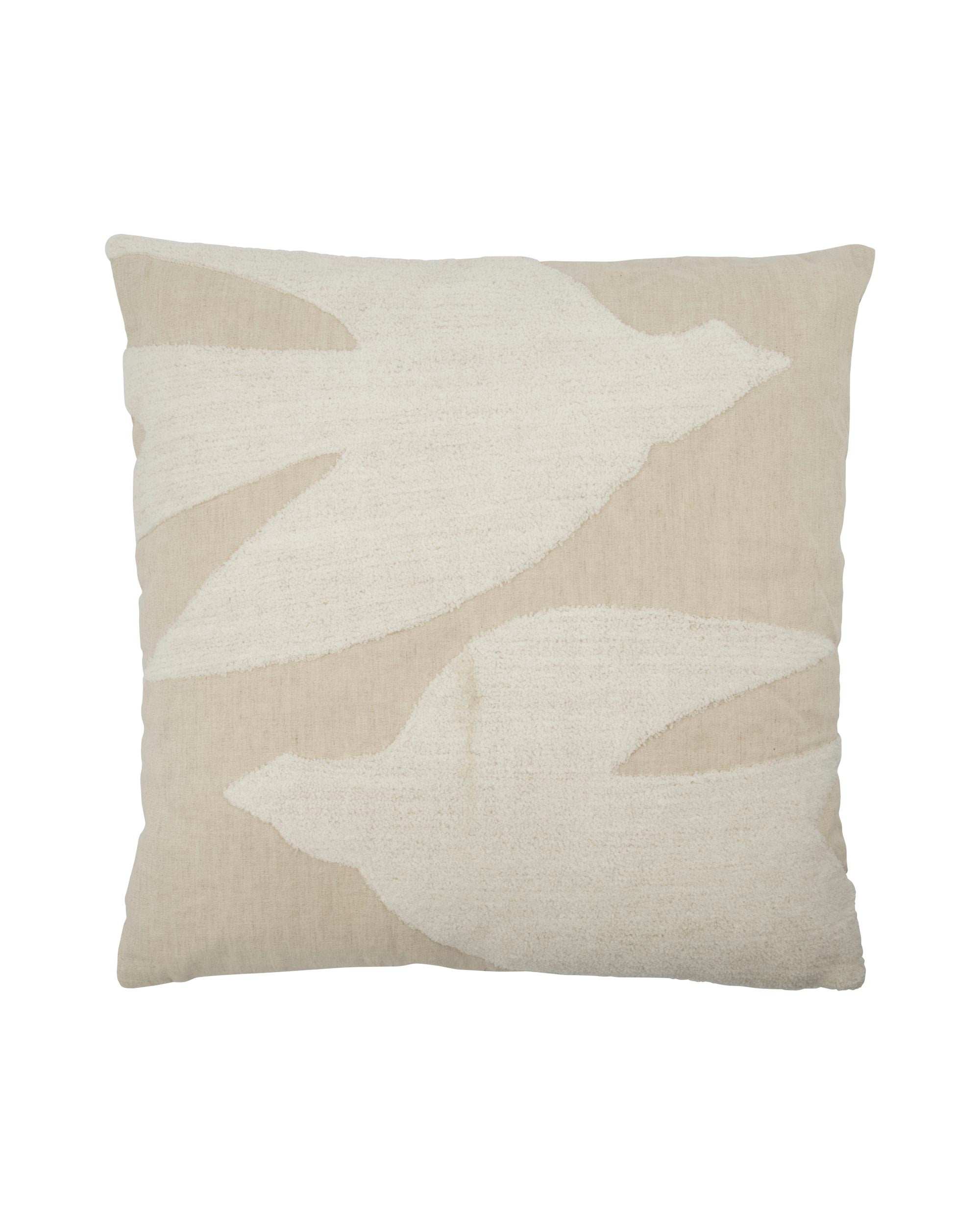 Bringe Ruhe, Wärme und einen Hauch Kunst in dein Interieur mit dem Fly Kissenbezug von House Doctor. Dieser quadratische Bezug in 50 x 50 cm wird von Hand aus einer natürlichen Mischung aus Baumwolle und Leinen gefertigt. Der weiche sandfarbene Untergrund wird durch ein abstraktes Vogelmotiv in passendem creme-weißem Stoff mit Struktur betont – dezent, stilvoll und herrlich anschmiegsam.