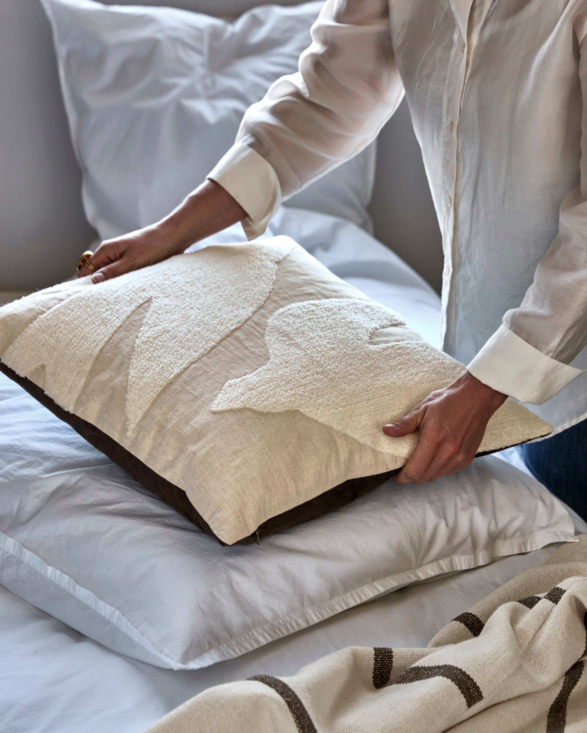 Perfekt als dekorativer Akzent auf einem neutralen Sofa oder einem gemachten Bett mit weißer oder sandfarbener Bettwäsche.