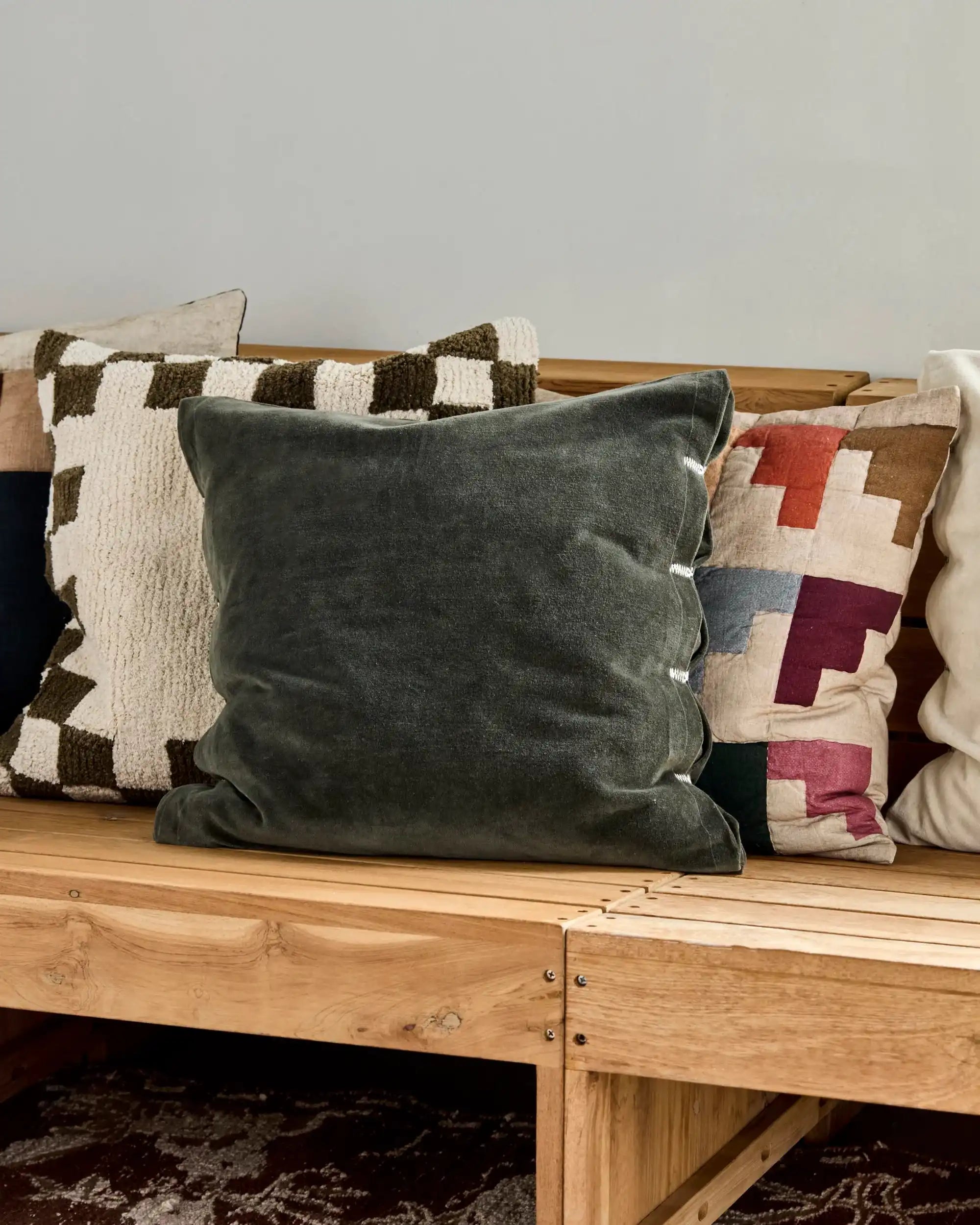Bringe Wärme und Luxus in dein Zuhause mit diesem grünen Kissenbezug von House Doctor. Gefertigt aus 100% Baumwollsamt fühlt sich der Bezug wunderbar weich an und verleiht jedem Raum sofort einen stilvollen, bohemian Look. Der tiefgrüne Farbton sorgt für eine ruhige Atmosphäre und einen edlen Akzent auf deinem Sofa oder Bett.