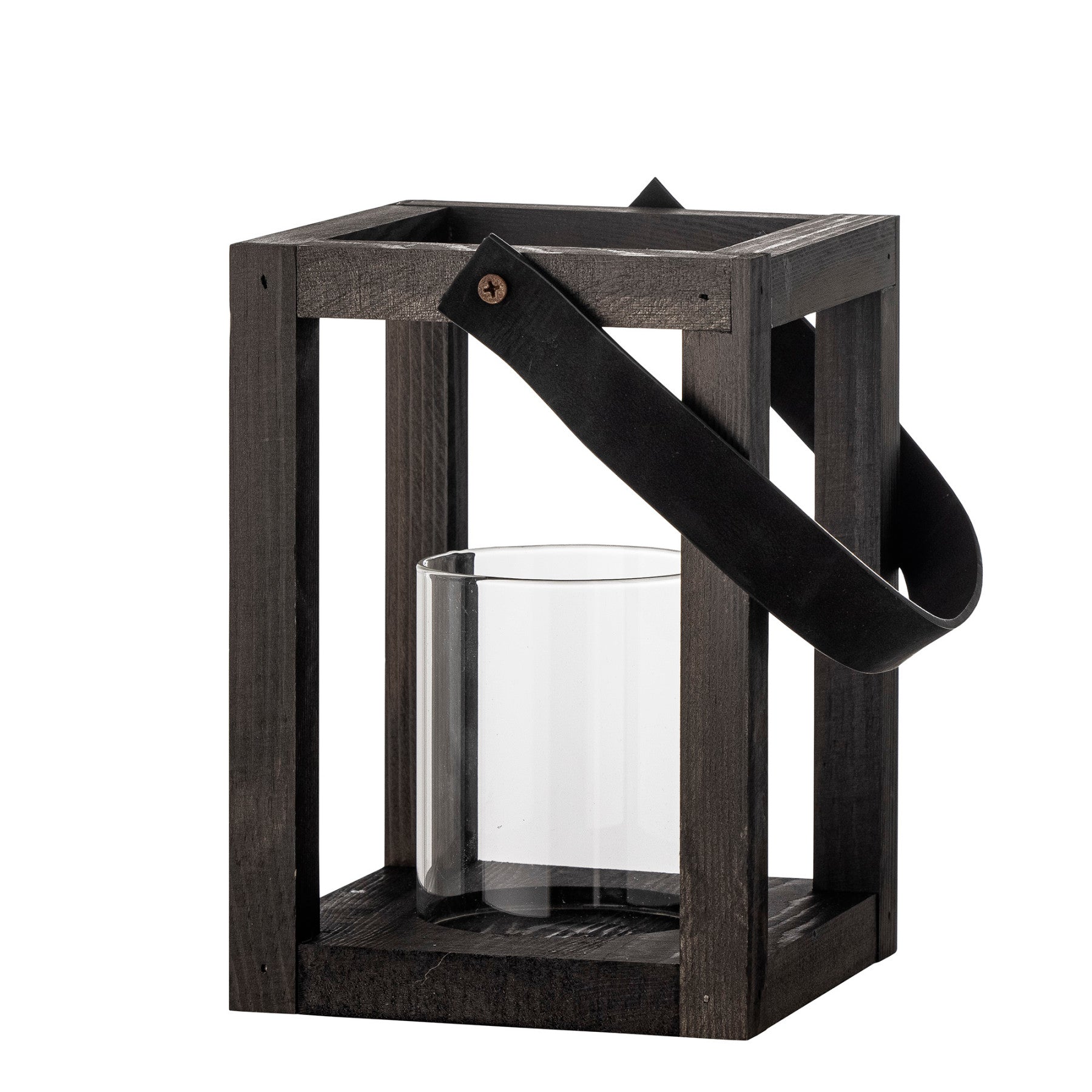 Details & Material: Gefertigt aus Kiefernholz in Schwarz, mit einem Glaseinsatz für deine Kerze und einem Ledergriff. Das Maß b × h × t 14 × 20 × 14 cm ist handlich: groß genug für eine schöne Stumpenkerze, klein genug für Fensterbank, Beistelltisch oder Sideboard. Das Glas hält die Kerze stabil und schirmt die Flamme dezent ab, während der Griff das Umstellen leicht macht.