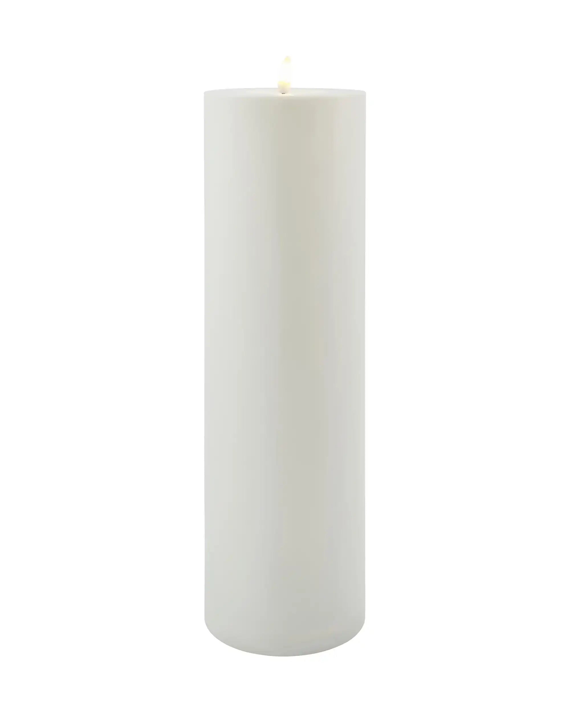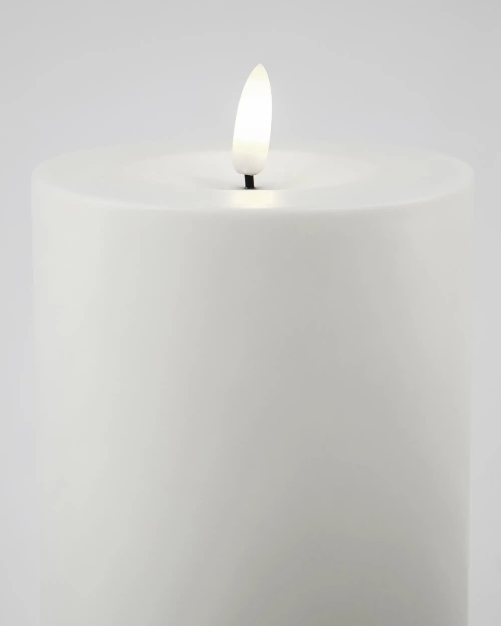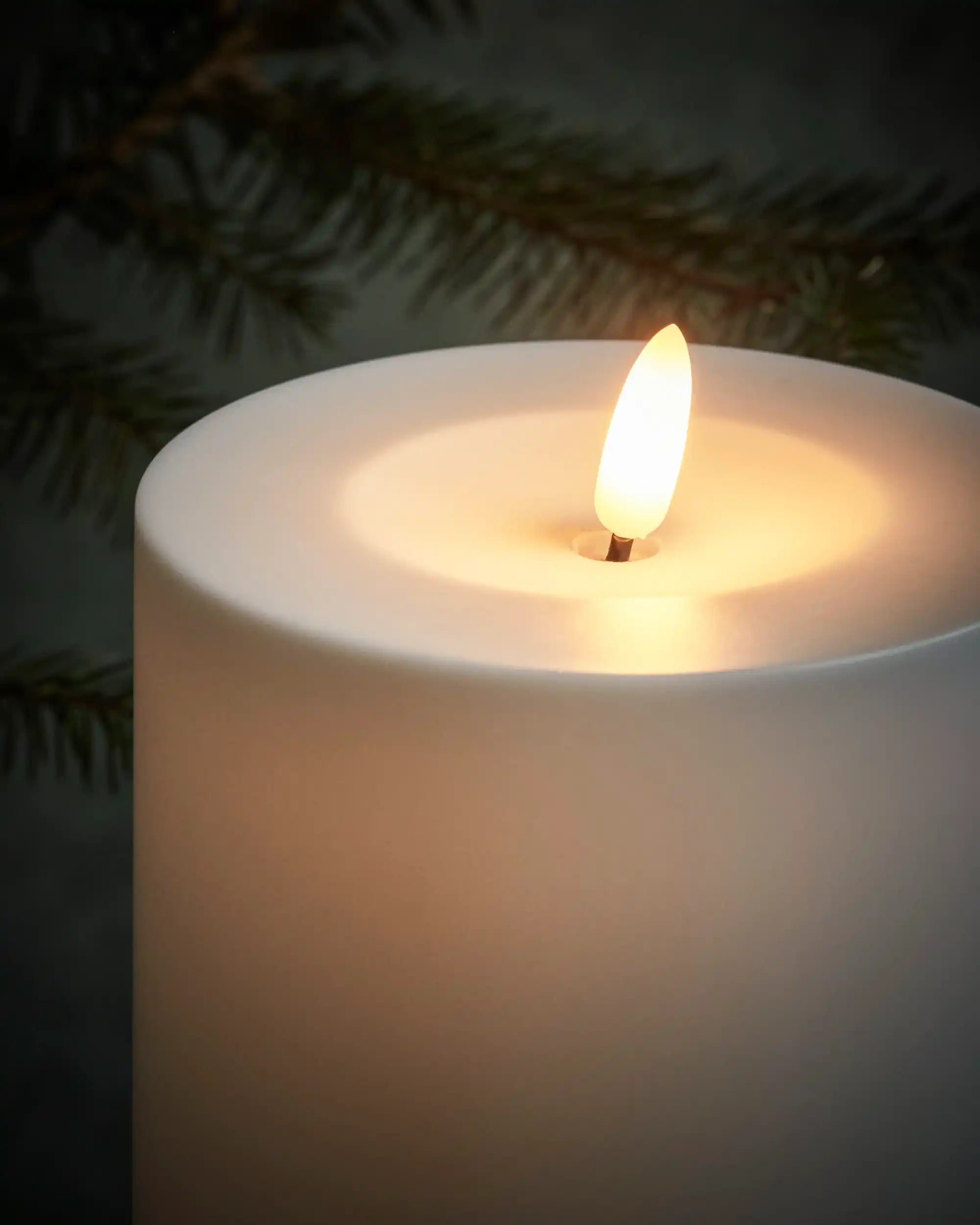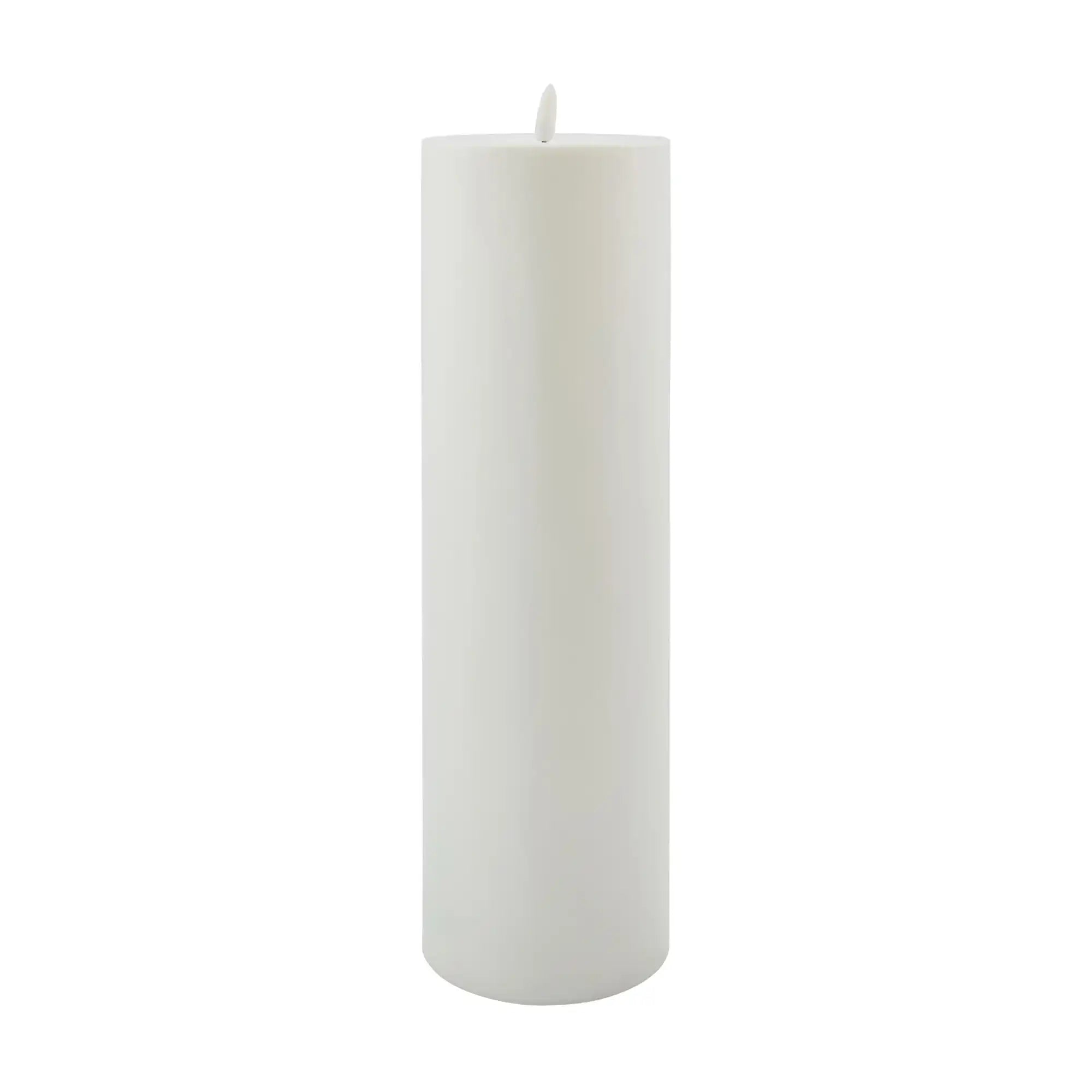 Die weiße Kerze besteht aus Kunststoff und ist 35 cm hoch bei einem Durchmesser von 10 cm. Dank des zeitlosen Designs passt sie mühelos zu verschiedenen Wohnstilen – von skandinavisch bis modern-minimalistisch. Der integrierte Fünf-Stunden-Timer schaltet die Kerze automatisch aus, was praktisch und energiesparend ist.