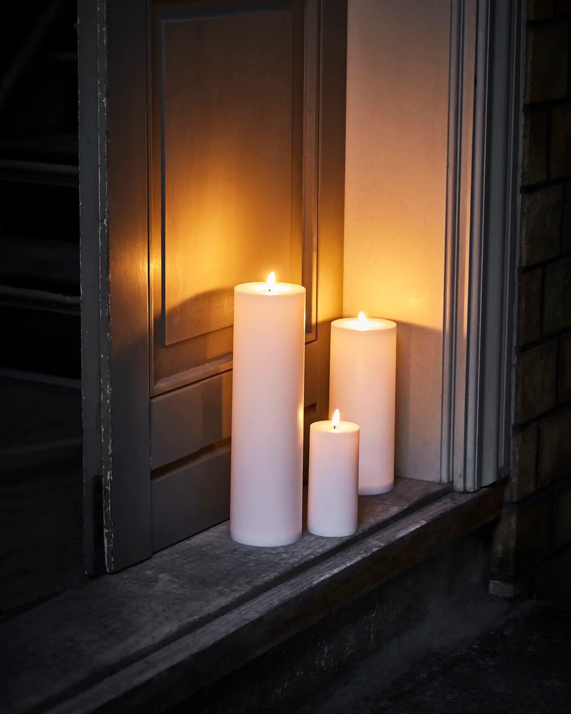 Tipp: Stelle die Kerze auf deinen Balkon oder vor die Haustür in eine Laterne für einen einladenden Akzent, auch wenn du nicht zu Hause bist. Kombiniere verschiedene Größen für einen verspielten Lichteffekt.