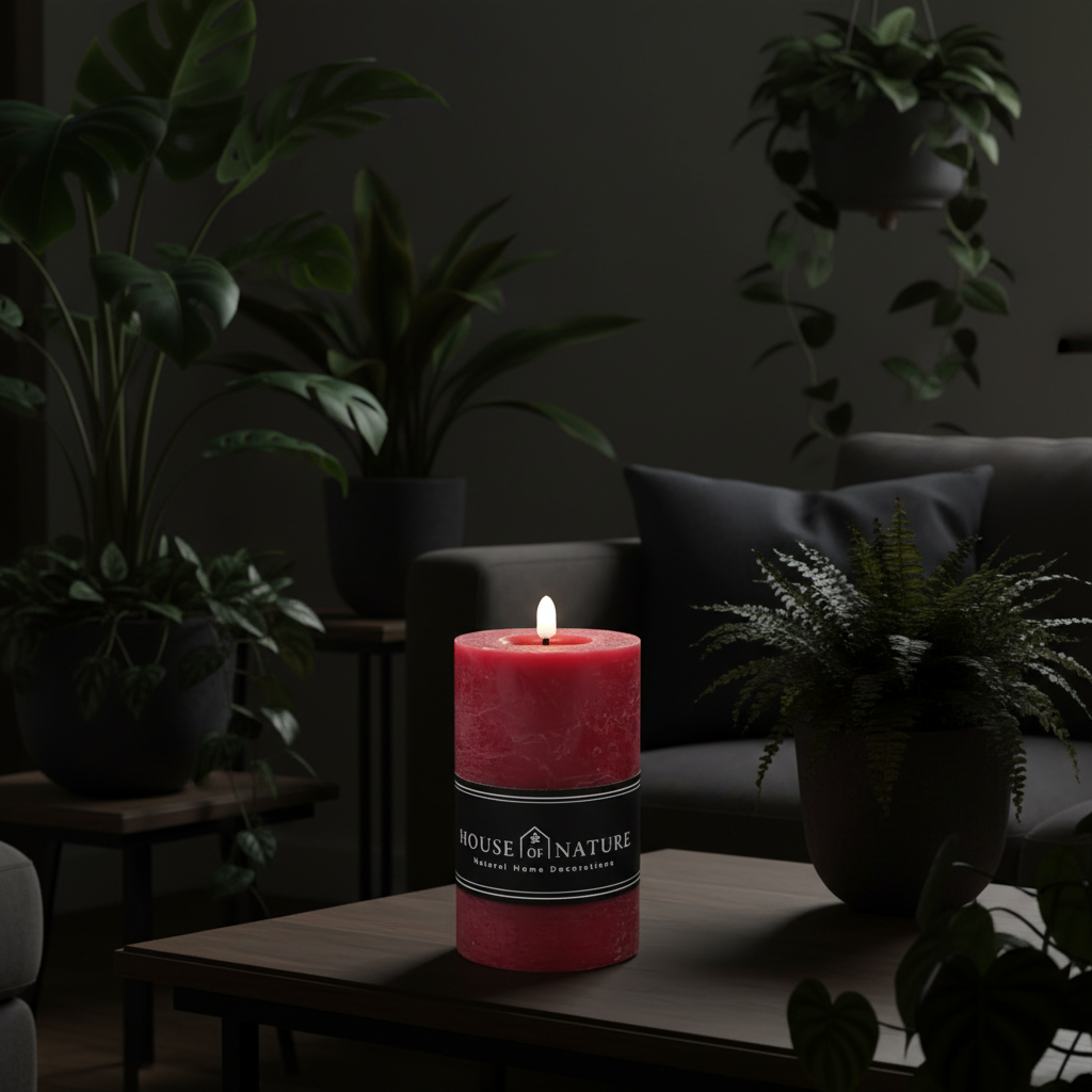 Die House of Nature LED-Kerze Rot 13 cm bringt sofort Wärme und Gemütlichkeit in dein Zuhause. Diese stimmungsvolle LED-Kerze besteht aus echtem Kerzenwachs und hat eine realistisch flackernde Flamme, die das Aussehen einer echten Kerze perfekt imitiert. Dank des glänzenden wax pool rund um die Flamme sieht es aus, als wäre das Wachs gerade geschmolzen – ganz ohne Feuer, Rauch oder tropfendes Wachs.