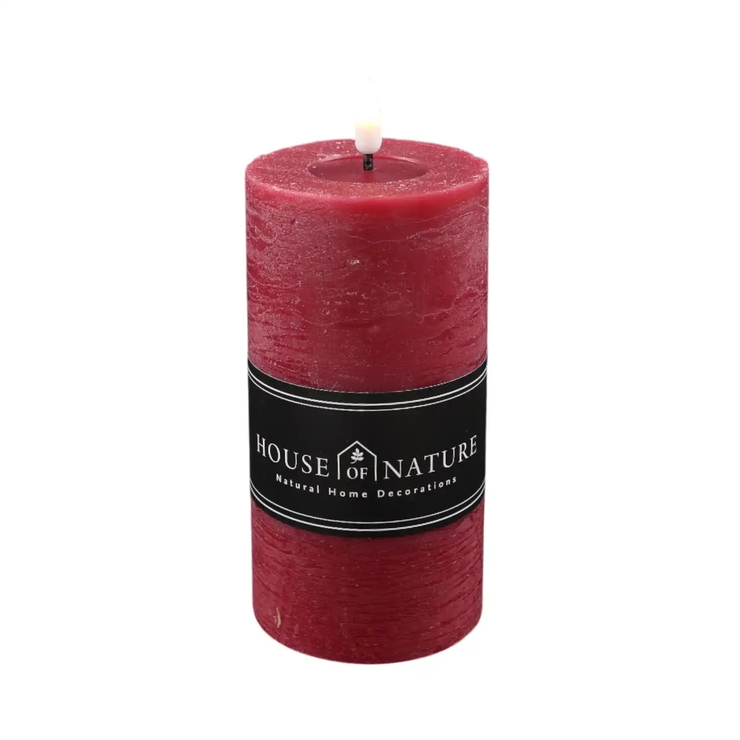 Setze die rote LED-Kerze als stimmungsvolles Highlight auf einem Tablett, in einer Laterne oder als Teil einer festlichen Tischdekoration ein. Kombiniere sie mit sandfarbenen oder grauen Varianten von House of Nature für einen warmen Kontrast.