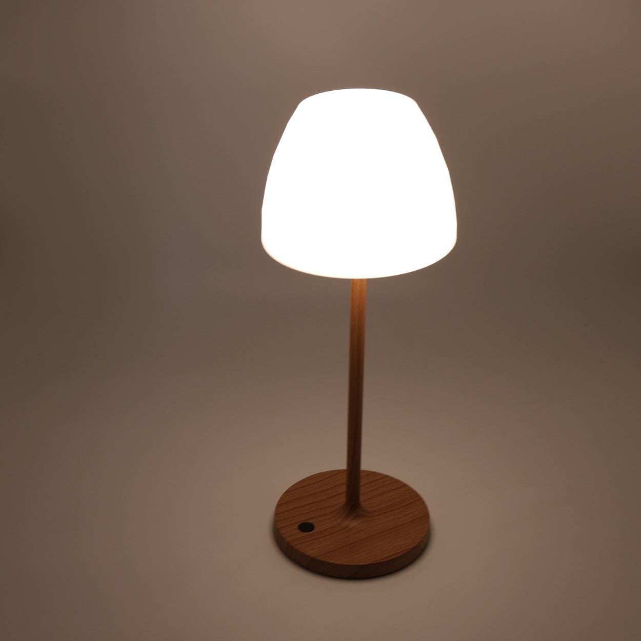 Die Lampe ist dimmbar und komplett kabellos. Nach dem Aufladen per USB nutzt du sie bis zu 6 Stunden – je nach gewählter Dimmstufe. Du schaltest die Lampe ganz einfach mit dem Knopf am Fuß ein oder aus.