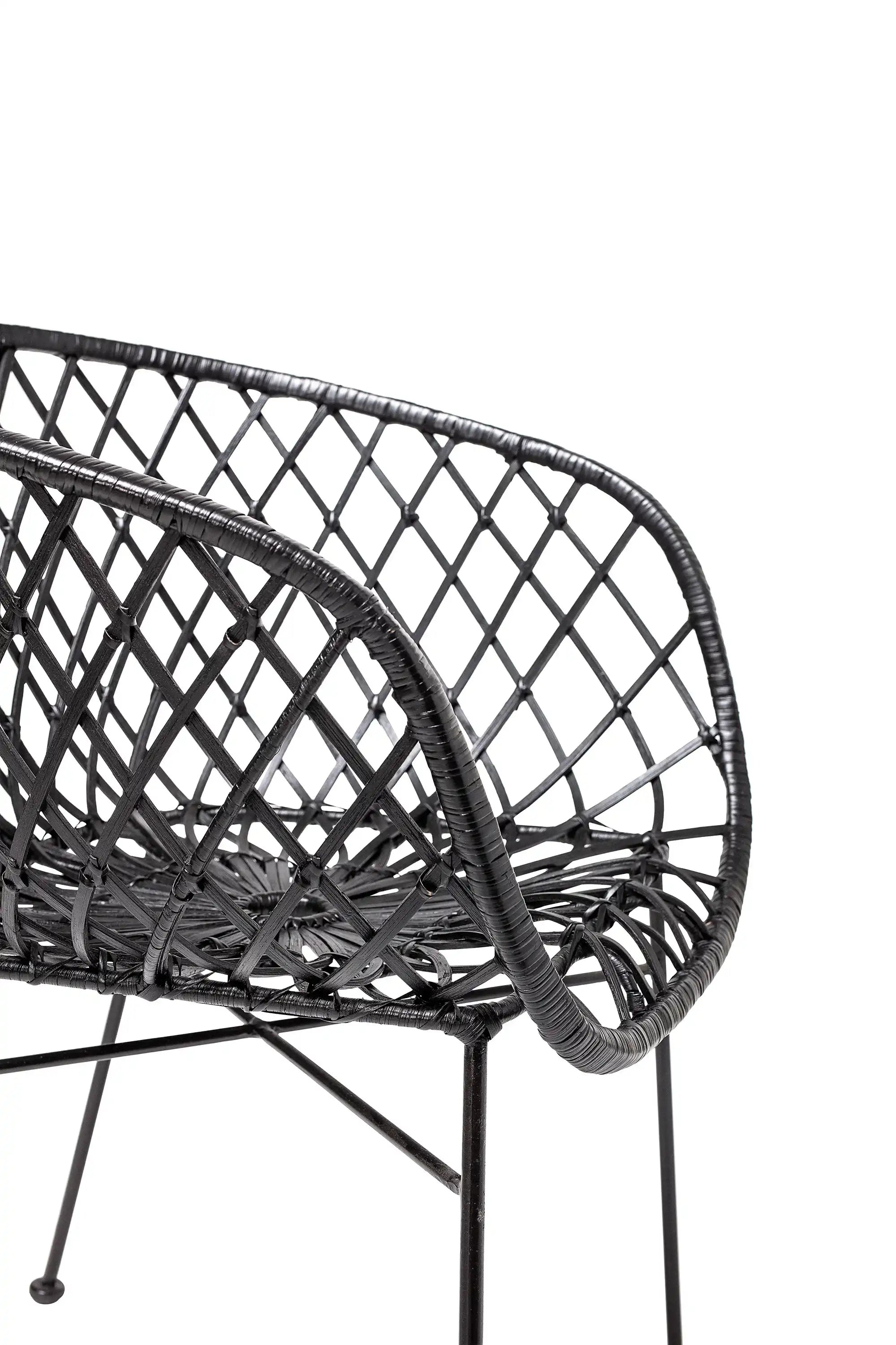 Details & Material: Mit seinem handgeflochtenen Rattan in tiefem Schwarz strahlt der Sessel skandinavische Schlichtheit und Wärme aus. Die großzügige Sitzhöhe von 76 cm und das kompakte Maß von 59 mal 59 cm machen ihn perfekt für kleine wie große Wohnzimmer, während das natürliche Rattan überraschend leicht und stabil ist.