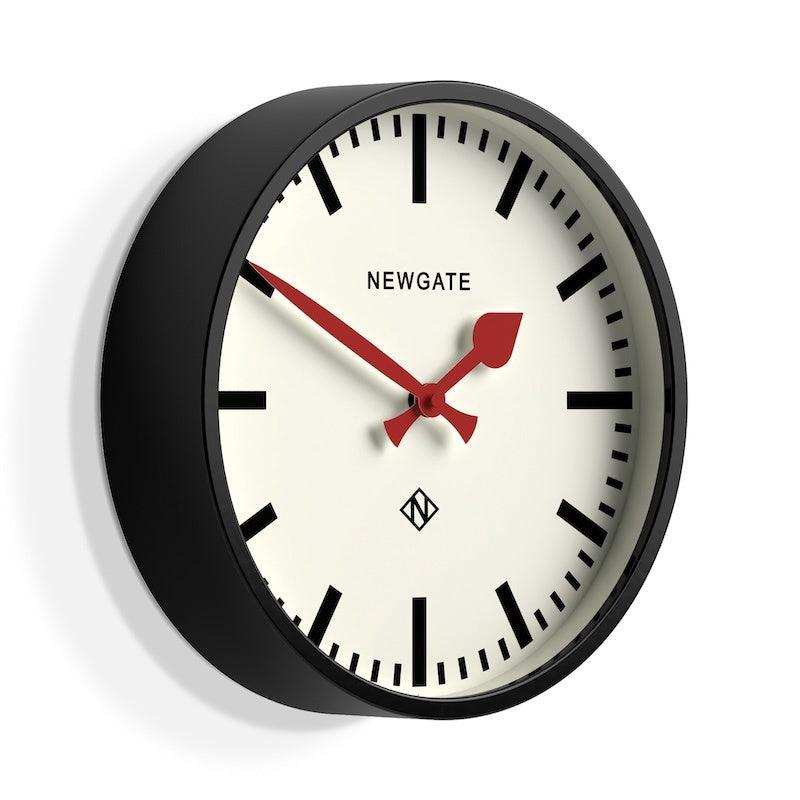 Die Newgate Luggage Wanduhr Schwarz 30cm ist inspiriert von den Bahnhofuhren der Mitte des 20. Jahrhunderts, die die Gründer von Newgate auf ihren Reisen durch Europa sammelten. Dieses zeitlose Design besticht durch ein markantes Zifferblatt mit kräftigen Markierungen und kontrastierenden roten Zeigern – ein echter Blickfang. Das tiefe, gerade geschnittene Metallgehäuse mit glänzend schwarzem Finish verleiht der Uhr einen robusten und eleganten Look, der perfekt zu industriellen, Retro- oder minimalistischen Interieurs passt.
