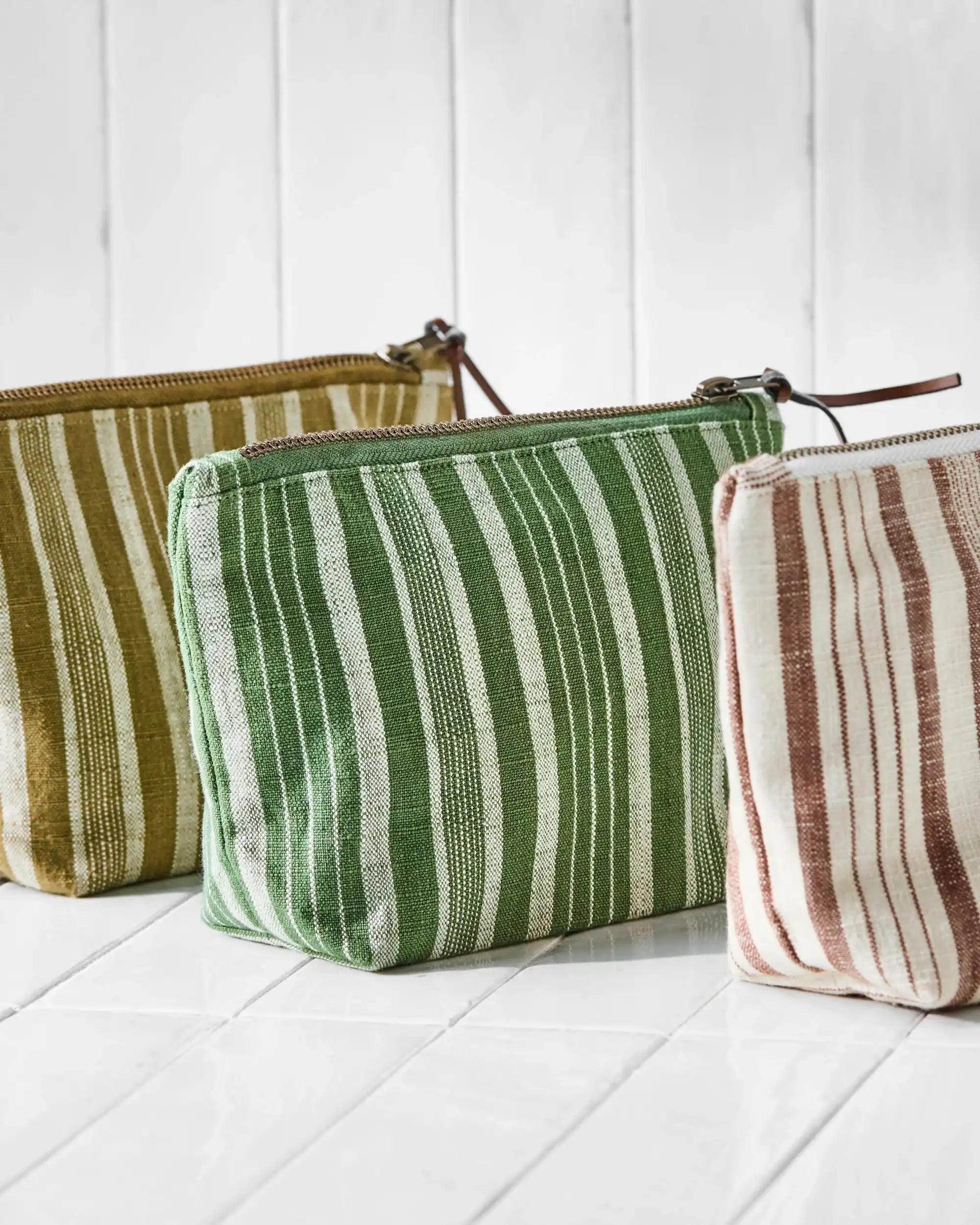 Ob unterwegs oder als fester Platz für dein Make-up: Dieses grüne Make-up-Täschchen bringt Ordnung in deine Routine. Die ruhigen Farbtöne und dezenten Streifen verleihen dem Täschchen einen natürlichen, leichten Look, der in jedes Badezimmer oder jede Tasche passt.