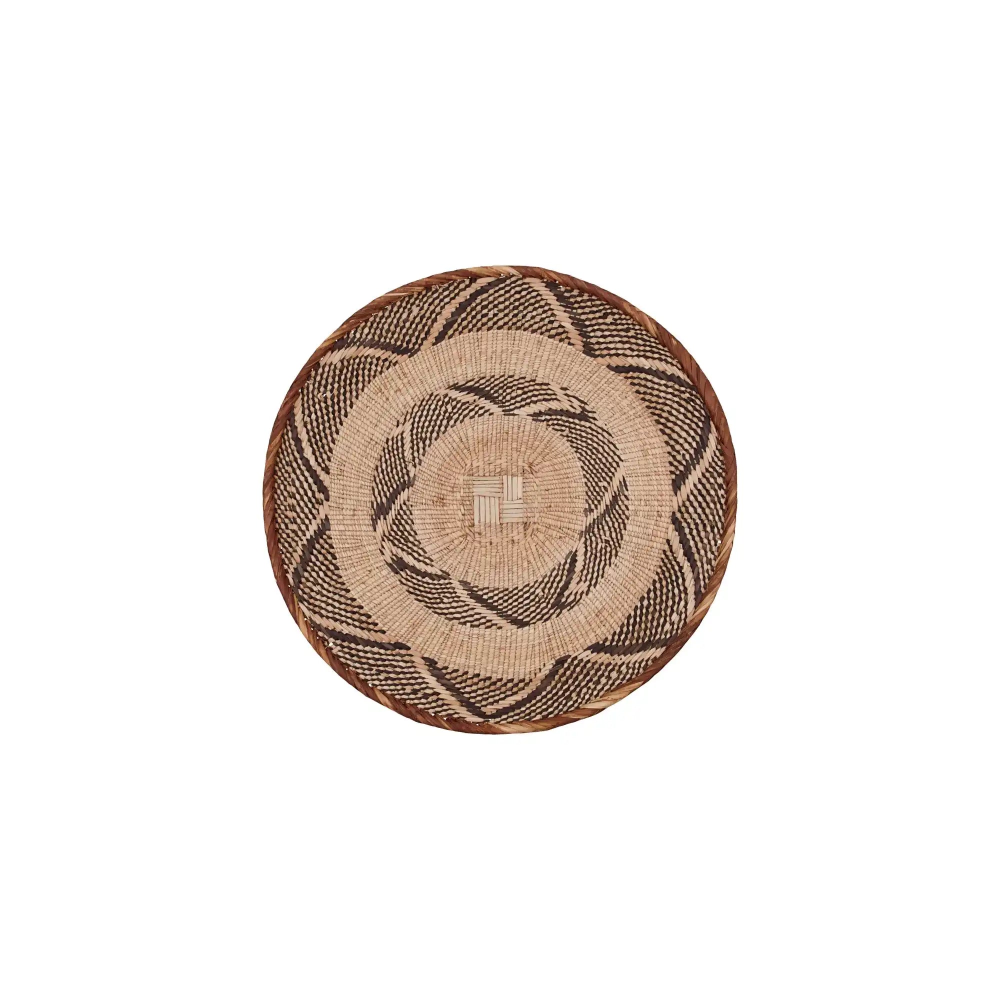 Jeder Korb ist handgefertigt aus Palmblatt und hat einen Durchmesser von 30 cm. Der natürliche Farbton und das dezente Muster sorgen für einen stilvollen und authentischen Look. Da der Korb von Hand geflochten wird, können Maße, Farben und Muster leicht variieren – kein Exemplar gleicht dem anderen.
