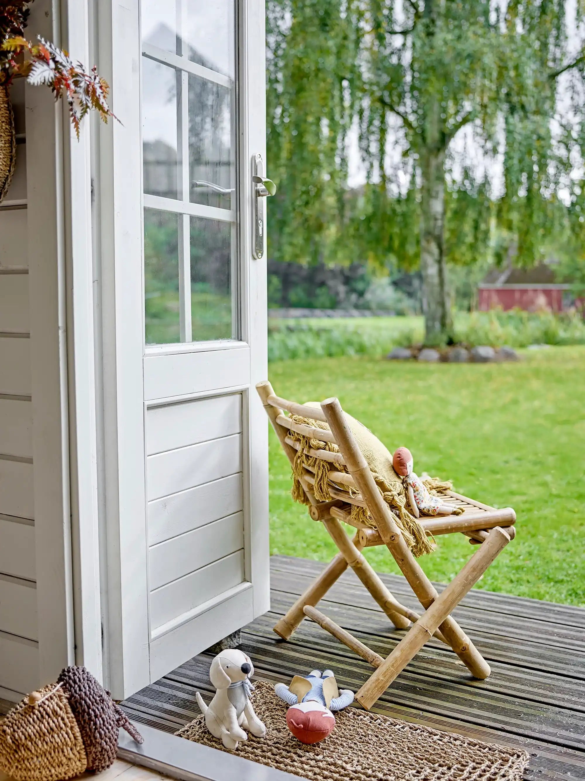 Anwendungstipp: Gestalte eine gemütliche Leseecke, indem du den Stuhl mit einem Kissen und einem niedrigen Tisch mit schönen Büchern kombinierst. Hast du eine Überdachung oder Veranda? Dann nutze den Stuhl auch dort, solange er nicht im Regen steht. Mit Accessoires aus Rattan oder Leinen wird es noch behaglicher. Und wenn das Spielen vorbei ist, klappst du den Stuhl einfach zusammen. So bleibt das Zimmer ordentlich und einladend!