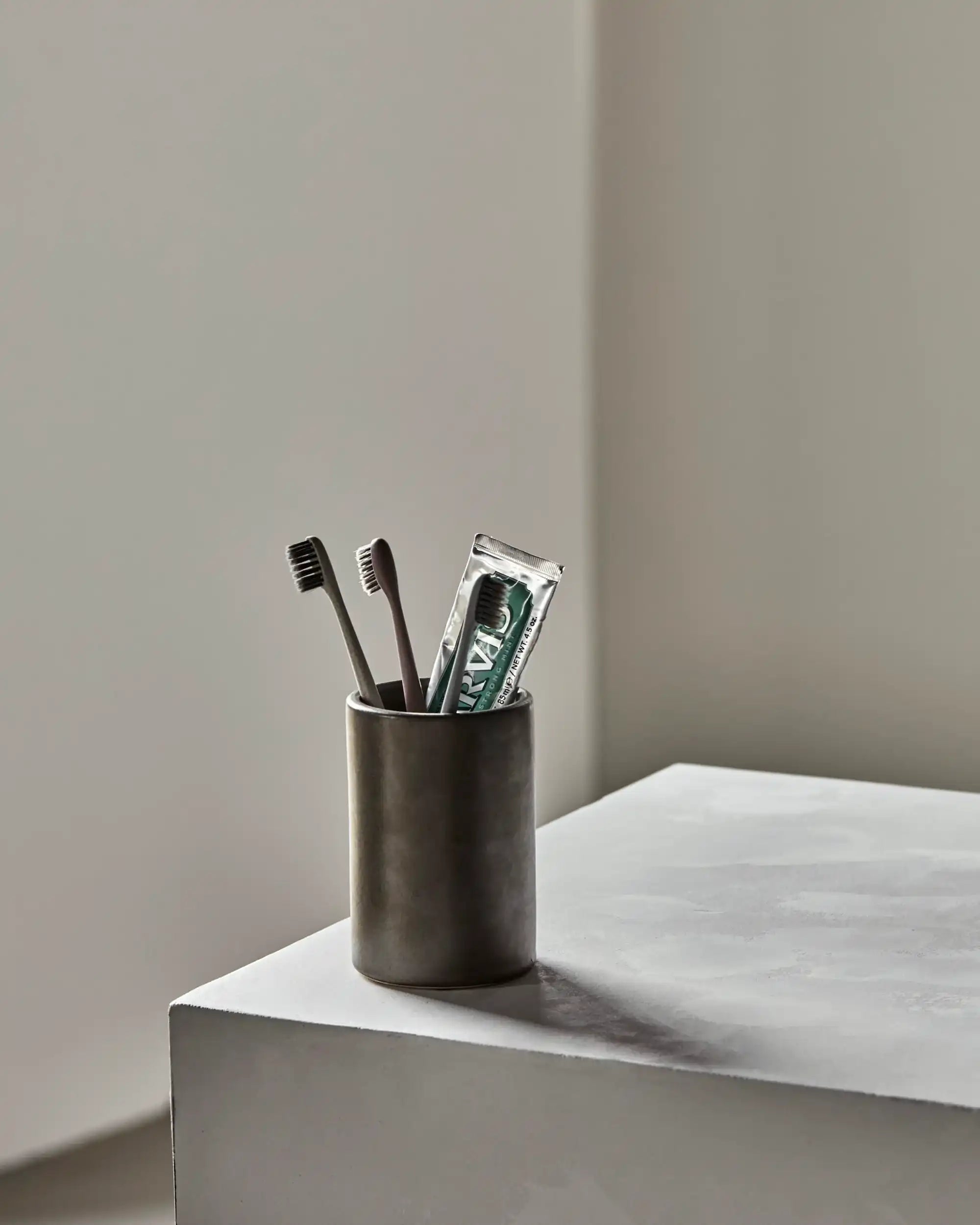 Mit einer Höhe von 12 cm und einem Durchmesser von 8 cm bietet Datura ausreichend Platz für Zahnbürsten, Make-up-Pinsel oder andere Alltagsutensilien. Die Form ist kompakt, aber überraschend geräumig und sorgt für einen gepflegten, stilvollen Raum. Ein vielseitiges Objekt, das Stil und Funktionalität mühelos vereint.