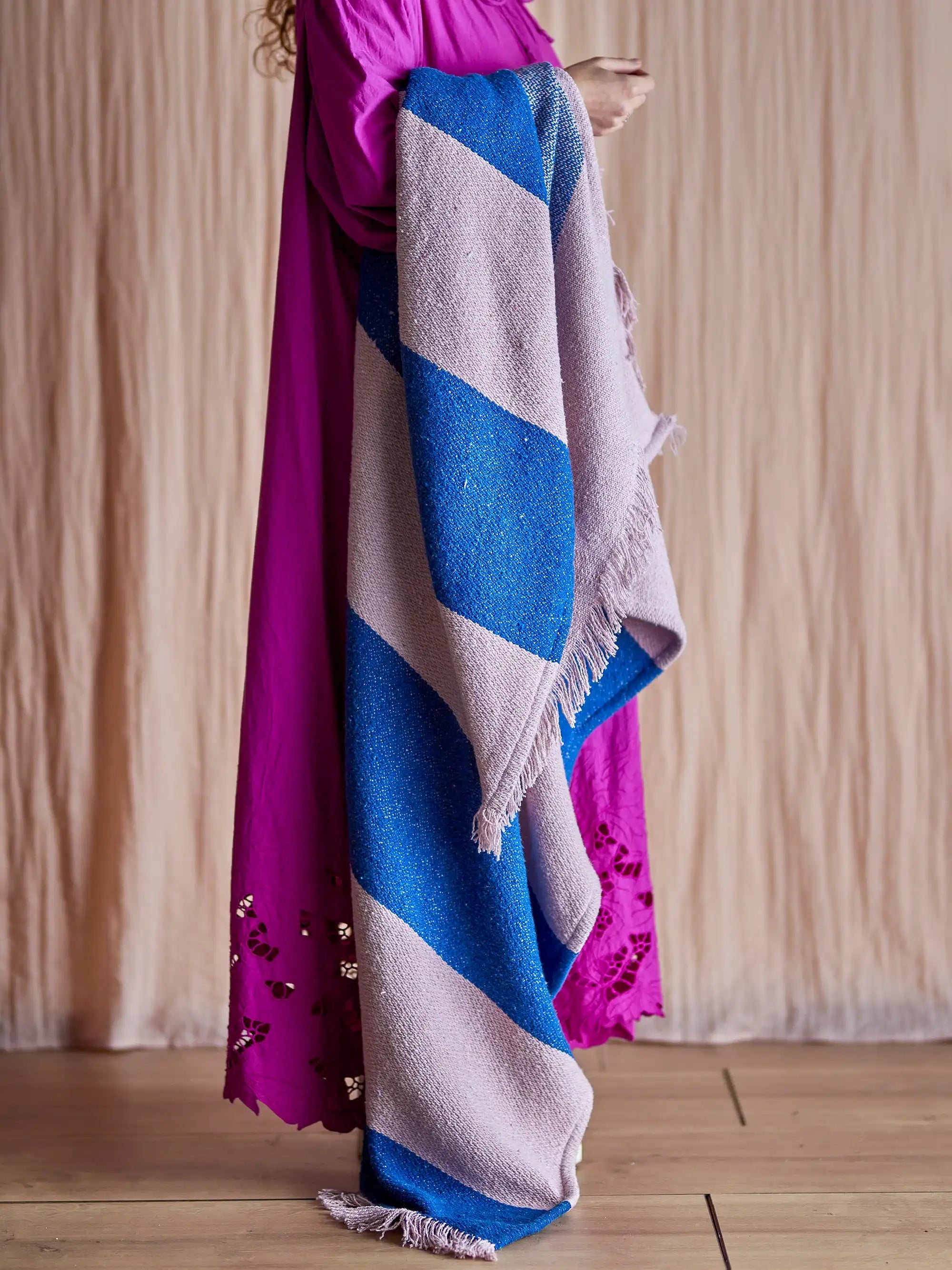 Warum du dieses Produkt haben möchtest: Diese Plaid lädt zum Entspannen ein und verleiht deinem Zuhause sofort eine warme, lebendige Ausstrahlung. Die sanfte Kombination aus Blautönen mit dezenten rosa Akzenten bringt eine frische skandinavische Atmosphäre, die du jeden Tag genießen kannst.