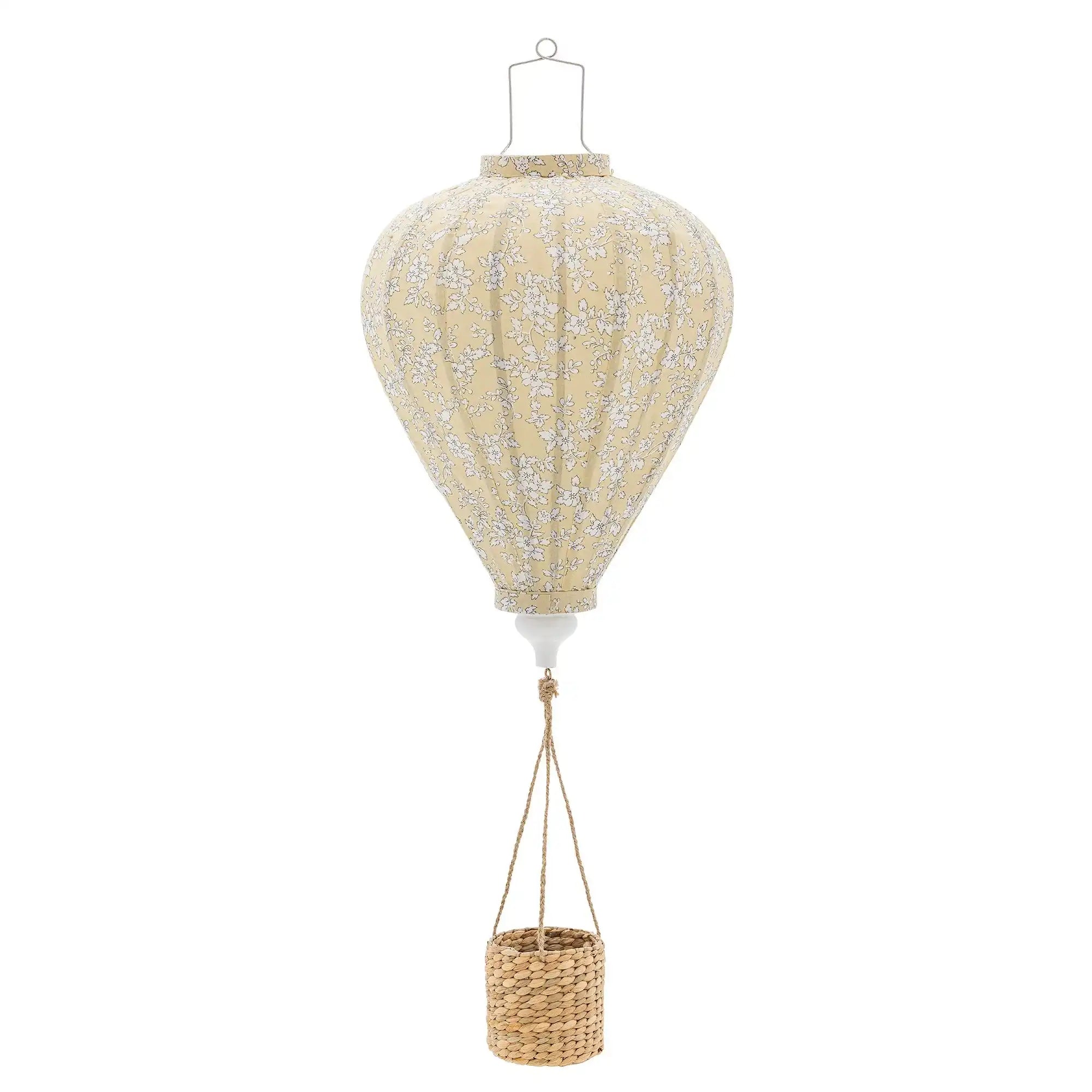 Der Ballon besteht aus Polyester mit einem zarten Blumenmuster. Das Körbchen ist aus geflochtenem Rattan und sorgt für einen natürlichen Look. Farbe: zartgelb mit Blumen. Maße: Höhe 85 cm, Durchmesser 35 cm. Groß, aber trotzdem schön leicht, sodass er sanft im Luftzug mitschwingt. Kategorie: Dekorations-Mobile für Babys und Kinder.