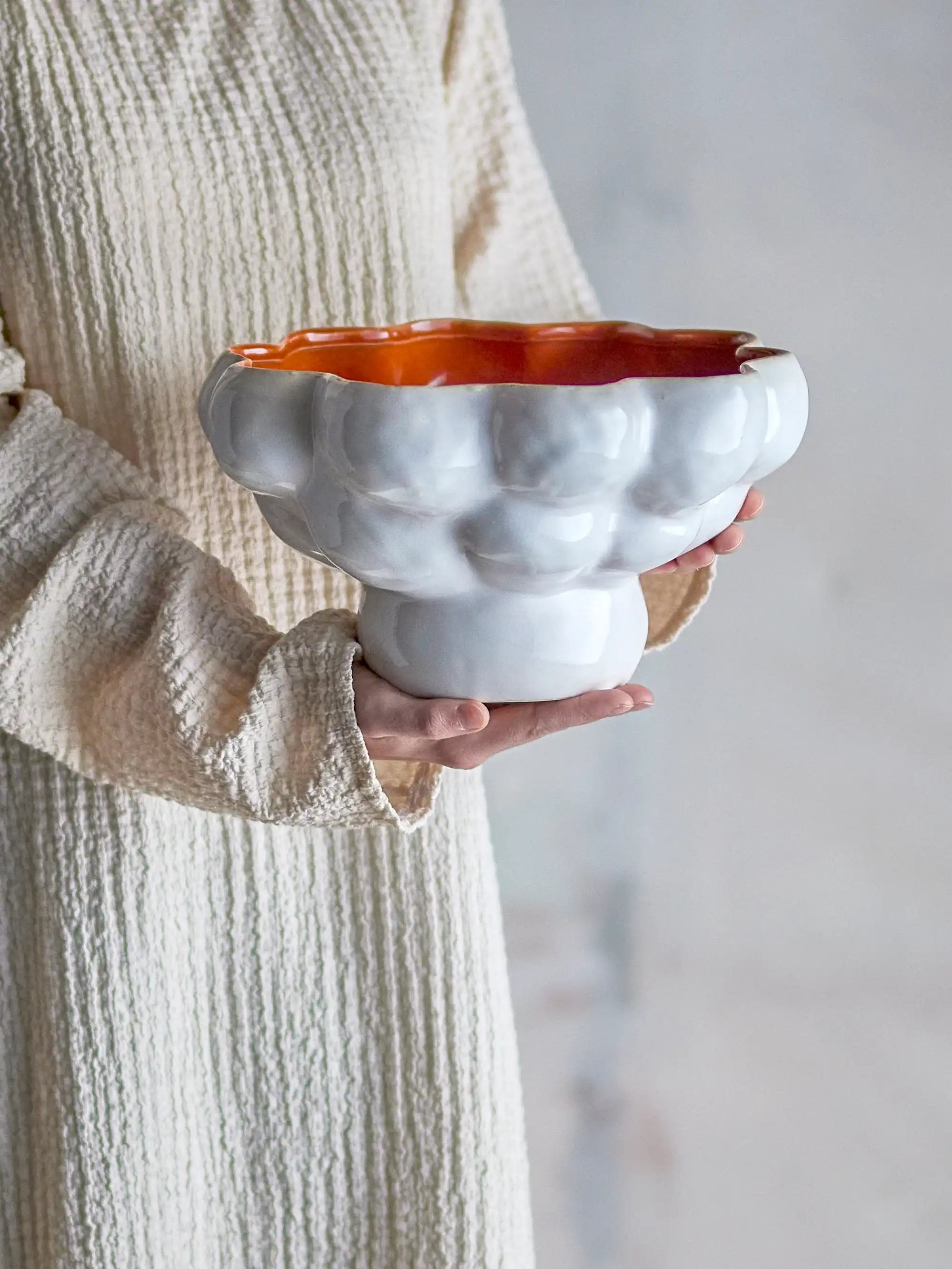 Warum du diese Schale von Bloomingville haben möchtest: Die Schale Keramik Weiß Valkyrie zieht sofort alle Blicke auf sich mit ihrem verspielten, blasenförmigen Design und dezentem Glanz. Mit dieser Schale bringst du eine fröhliche, stilvolle Note in dein Zuhause, die perfekt zu einem skandinavischen Ambiente passt.