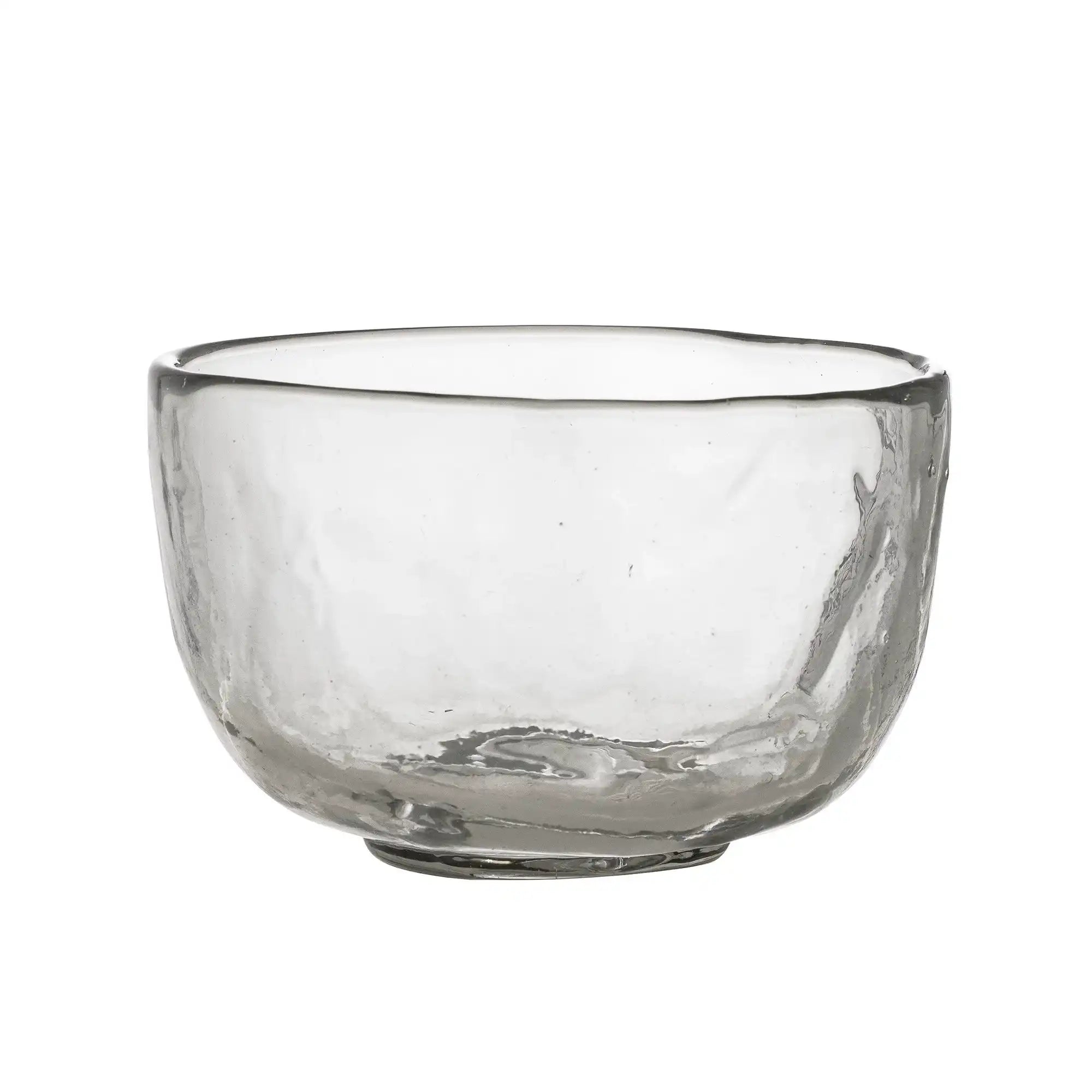 Details & Material: Die Schale besteht aus recyceltem Glas und ist mundgeblasen, wodurch leichte Variationen in der Dicke und kleine Bläschen auftreten können – ein charmantes Zeichen von Handwerkskunst. Dank des kompakten Formats b × h × t 8 × 5 × 7,5 cm passt sie mühelos zwischen deine anderen Accessoires und nimmt wenig Platz ein. Die transparente Farbe hält das Gesamtbild luftig und lässt sich leicht mit Holz oder Keramik kombinieren. Die organische Optik verleiht deinem Arrangement Struktur, ohne zu dominieren.