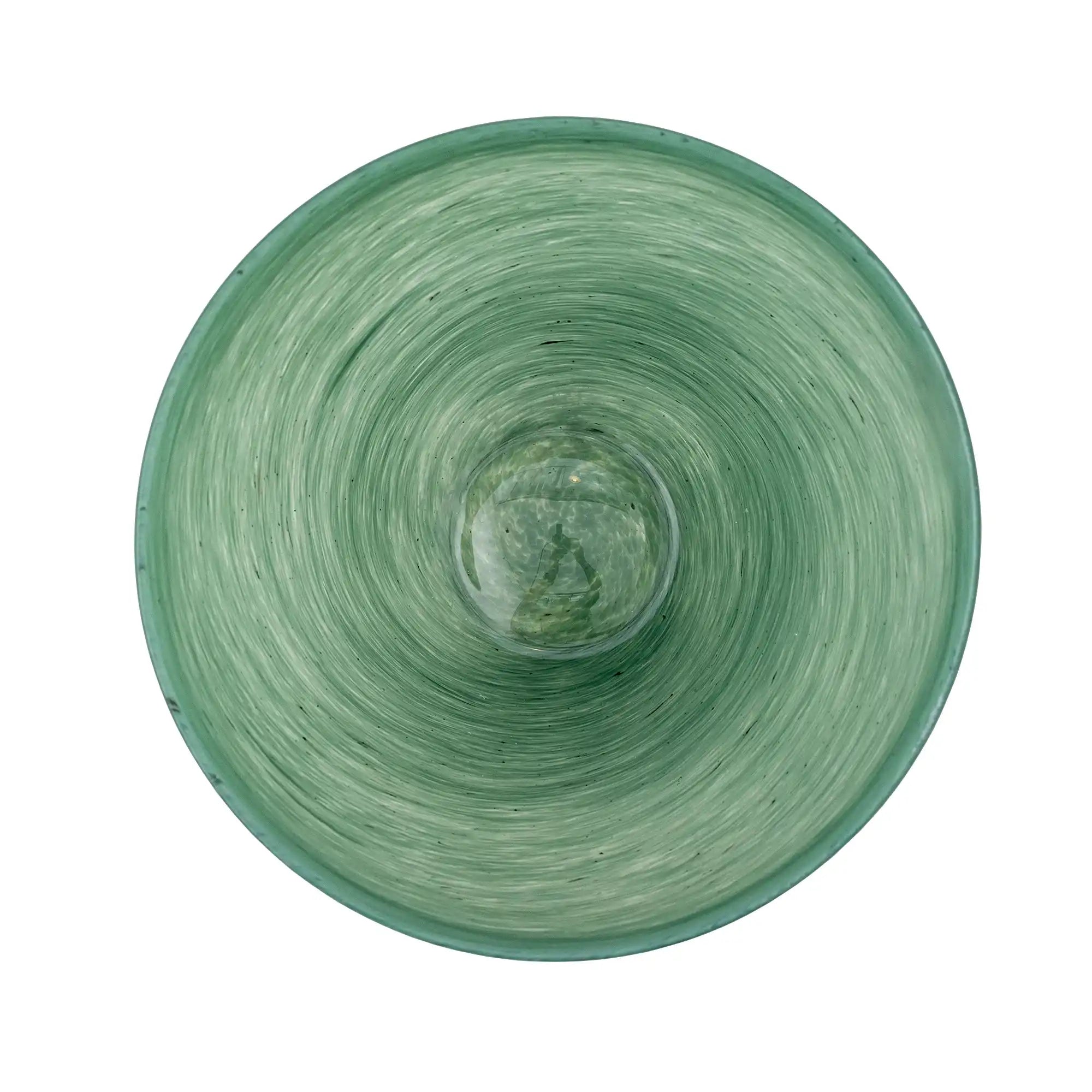 Einzigartiges Glas mit Charakter: Die Esmaralda Schale wird mundgeblasen, was zu feinen Streifen und immer leicht unterschiedlichen Grüntönen führt – jede Schale ist also ein einzigartiges Kunstwerk. Dank des großzügigen Durchmessers von 25 cm bietet sie viel Platz für Salate, Obst oder dekorative Arrangements.