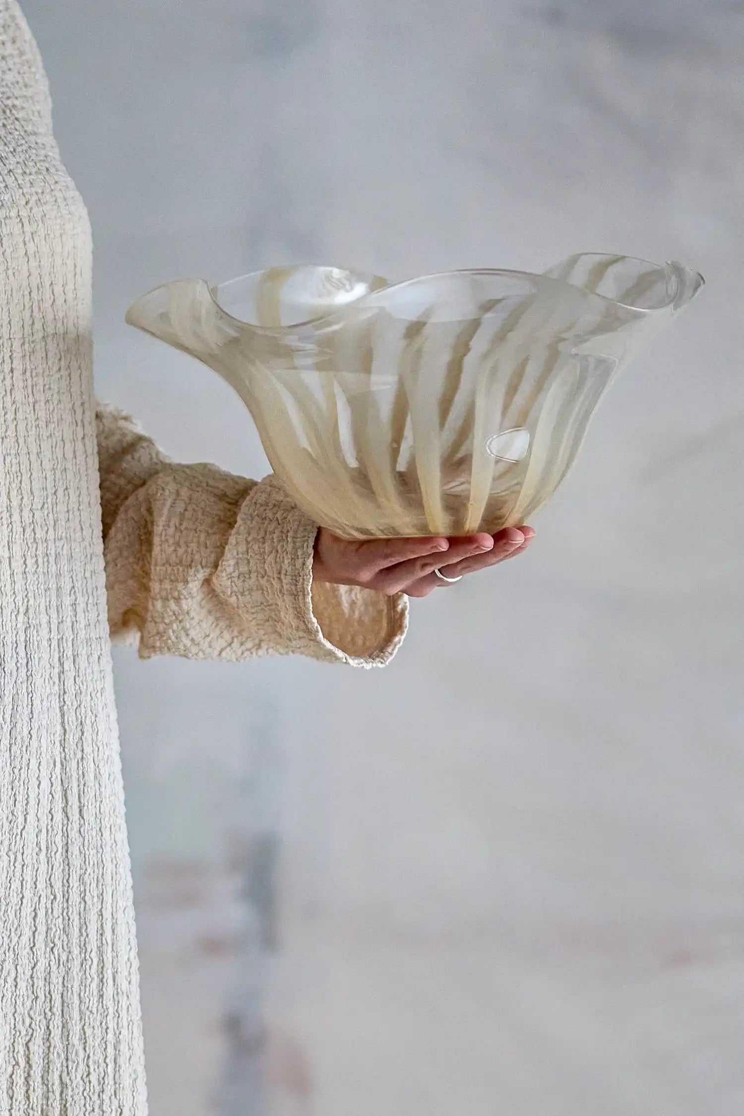 Details & Material: Die Schale ist aus gestreiftem Glas gefertigt, sorgfältig verarbeitet und von Hand geformt für ein einzigartiges und stilvolles Ergebnis. Mit ihren großzügigen Maßen von 30 x 13 x 32 cm bietet die Imri ausreichend Platz für Obst, Dekoration oder als besonderes Centerpiece bei Dinnerpartys, während das robuste Glas sie sowohl langlebig als auch zeitlos macht.
