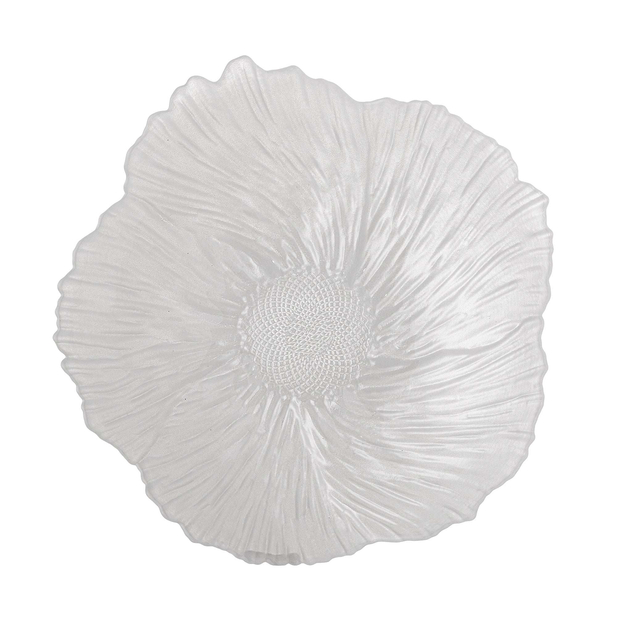 Details & Material: Die Iani Schale ist aus hochwertigem Glas gefertigt und dezent mit einer besonderen Perlmuttbeschichtung veredelt. Dank des beeindruckenden Durchmessers von 26 cm setzt diese Schale all deine Lieblingsdekorationen, Obst oder Kerzen gekonnt in Szene, während das geringe Gewicht und die niedrige Höhe (6,5 cm) sie besonders handlich machen. Die Harmonie zwischen dem zeitlosen Weiß und dem ausdrucksstarken Design macht diese Schale sowohl auffällig als auch vielseitig einsetzbar.