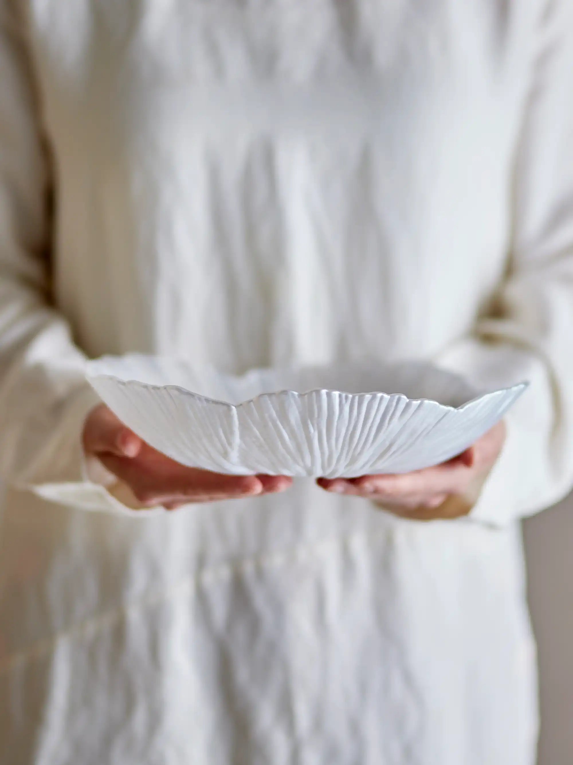 Warum du diese Schale von Bloomingville haben möchtest: Mit dieser weißen Glasschale zeigst du deinen Sinn für Stil. Der elegante Perlmuttglanz und das blumenartige Design schaffen sofort eine raffinierte, skandinavische Atmosphäre auf dem Tisch oder Sideboard.