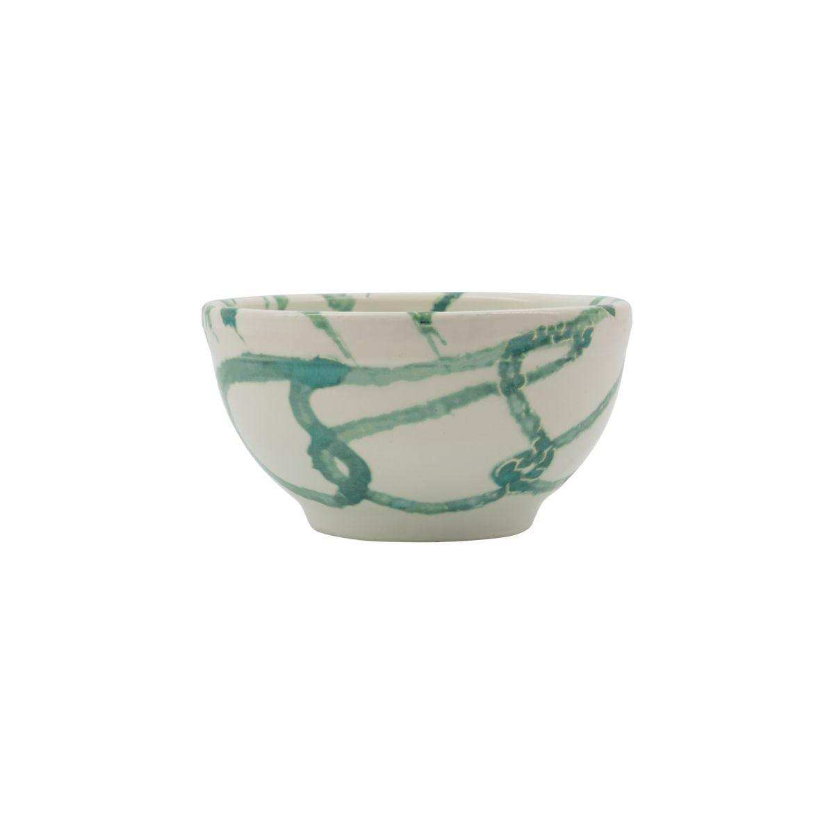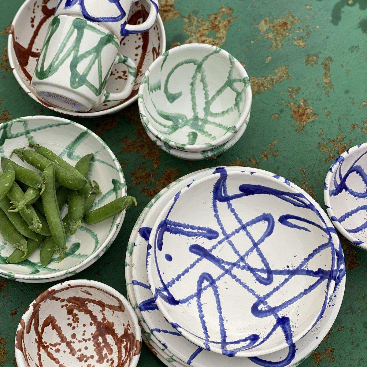 Die grüne Jamm Schale zeichnet sich durch ihr lebendiges Muster aus – ein trendiges Augenzwinkern an die natürliche Schönheit traditioneller Keramik. Sie verleiht jedem Tischarrangement einen unverwechselbaren Charme und Persönlichkeit, egal ob für ein alltägliches Abendessen oder einen besonderen Anlass.