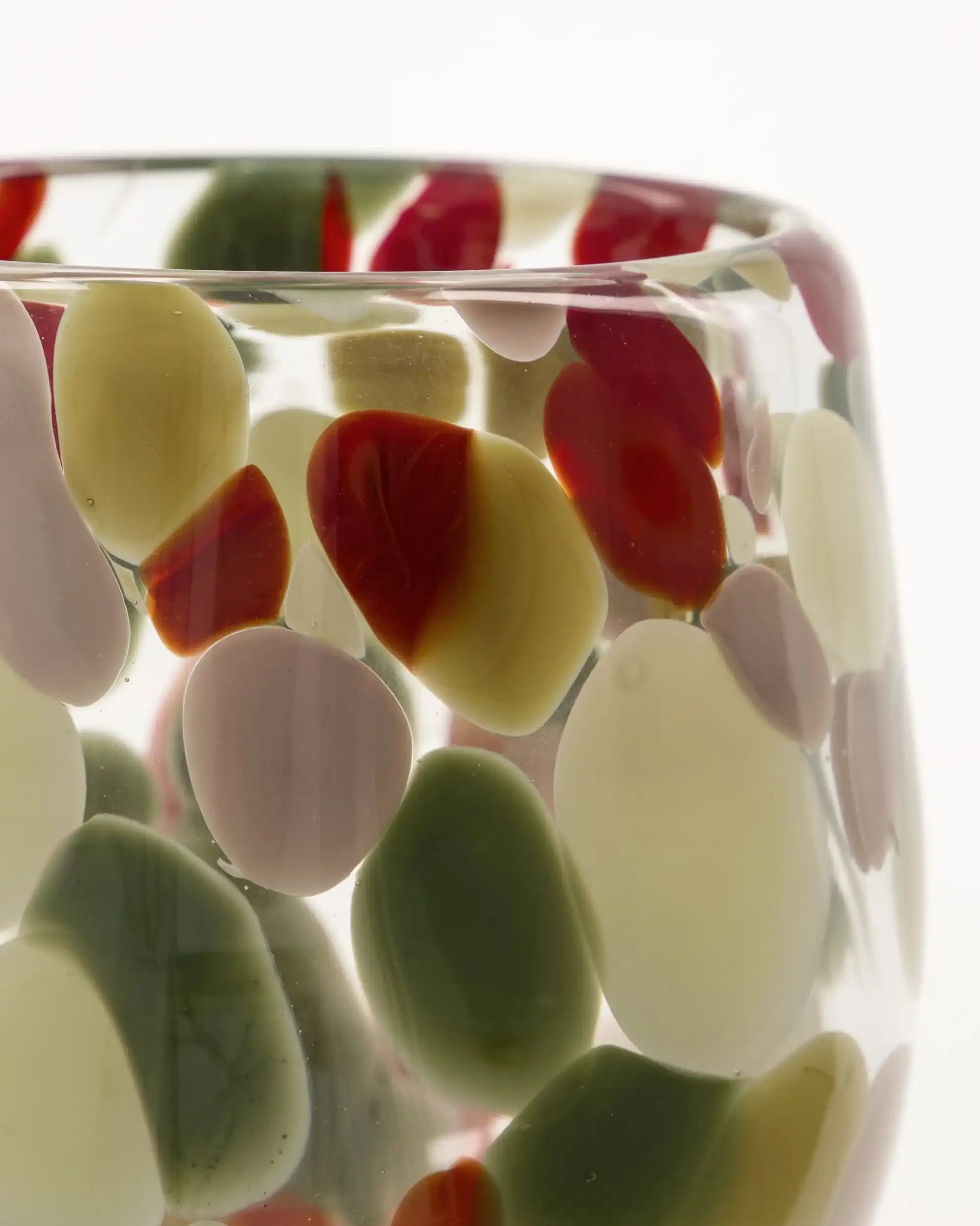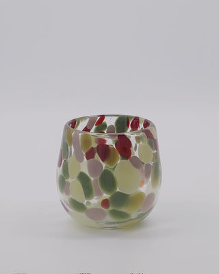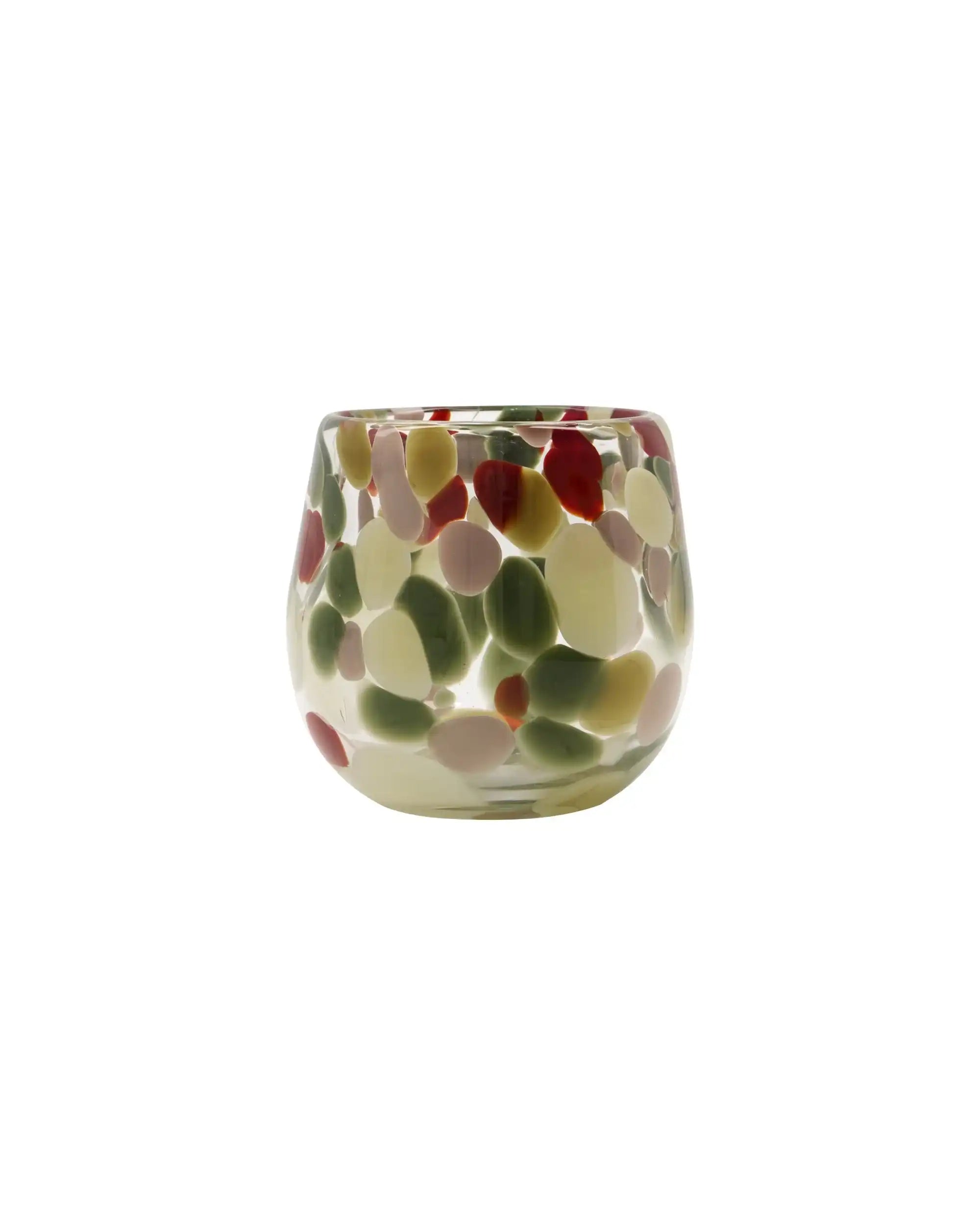 Bringe Wärme, Atmosphäre und Farbe in dein Zuhause mit dem House Doctor sfeerlicht Dot multicolor 12 cm. Dieses mundgeblasene Windlicht ist handgefertigt aus klarem Glas, in das farbenfrohe Punkte in Grün-, Rot-, Rosa- und Gelbtönen dezent eingearbeitet sind. Die verspielten Muster verleihen jedem Raum eine fröhliche Note und sorgen für ein wunderschönes, diffuses Licht, wenn du ein Teelicht hineinstellst.