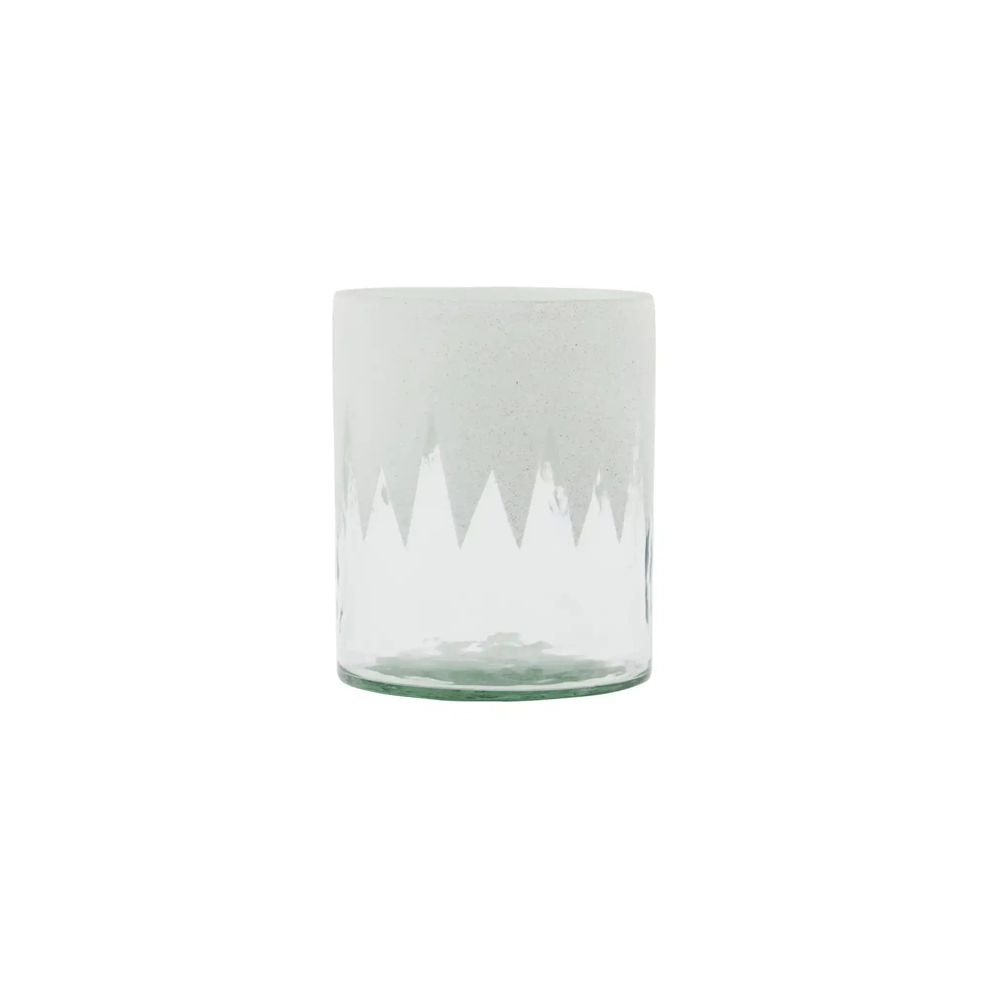 Dieser handgefertigte Halter besteht aus robustem Glas mit klarem Boden und einer weißen Oberfläche voller feiner Glitzerpartikel. Die Struktur ist durch verspielte Luftbläschen im Glas fröhlich unregelmäßig, was jedes Stück einzigartig macht. Mit einer Höhe von 10 cm und einem Durchmesser von 8 cm ist er eine dezente, aber stilvolle Ergänzung für deine Weihnachtsdekoration.