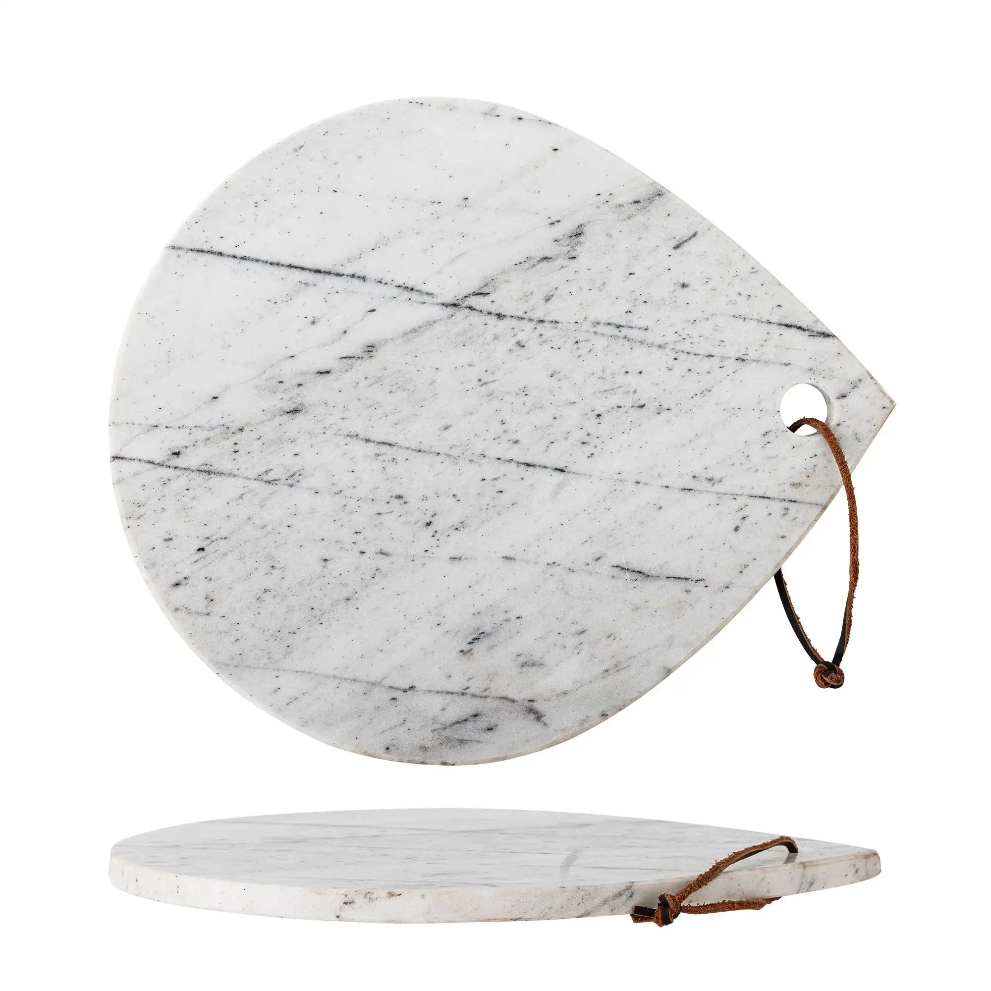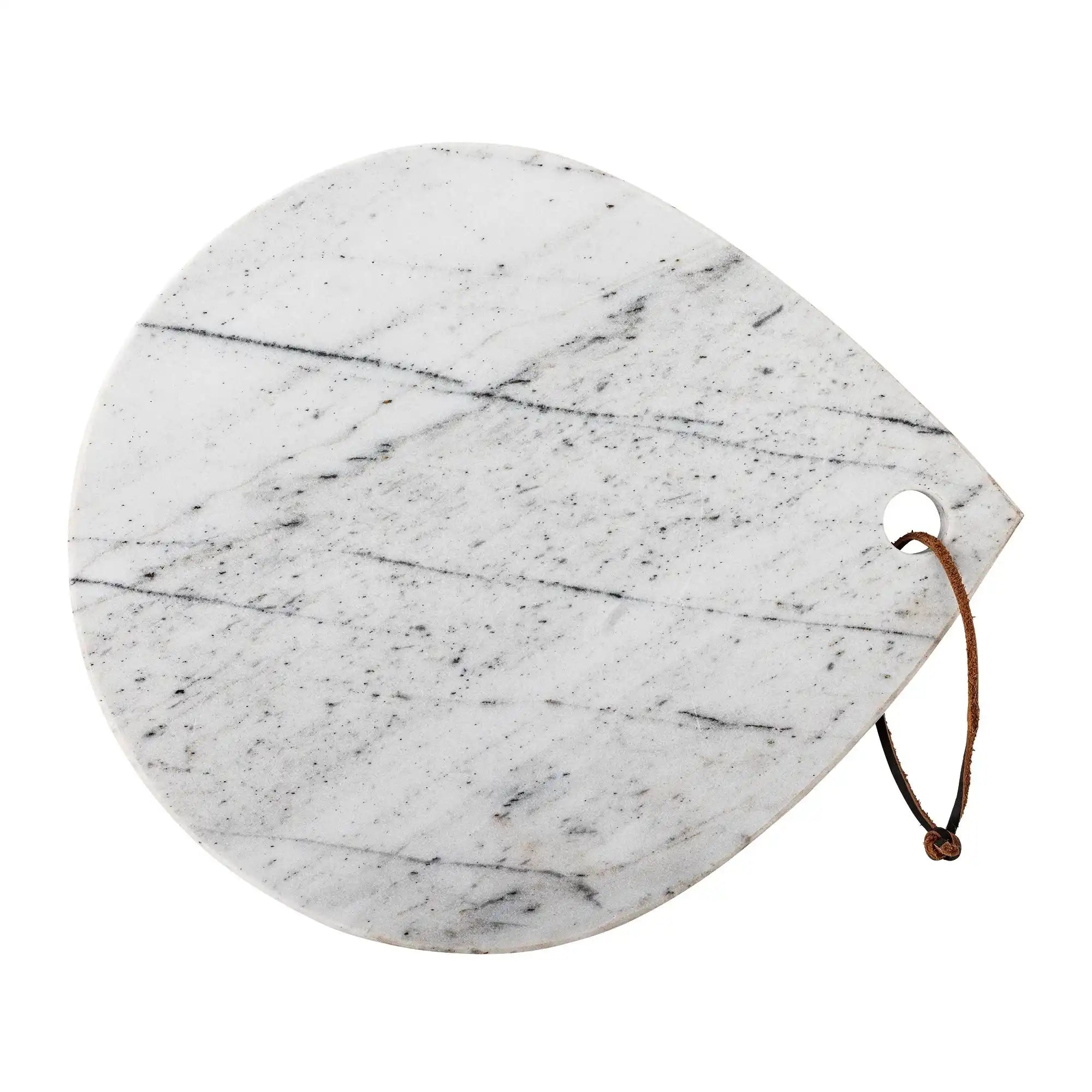 Details & Material: Das Brett besteht aus Marmor in der Farbe Weiß und misst b × h × t 1,5 × 30,5 × 35,5 cm. Naturstein bedeutet, dass jede Maserung und Ader einzigartig ist; genau das verleiht deinem Exemplar Charakter. Die glatte Oberfläche präsentiert Snacks elegant und fühlt sich solide an. Die abgerundete Tropfenform und das dezente Aufhängeband sorgen für ein raffiniertes Finish, das wenig Platz einnimmt, wenn du das Brett verstauen möchtest.