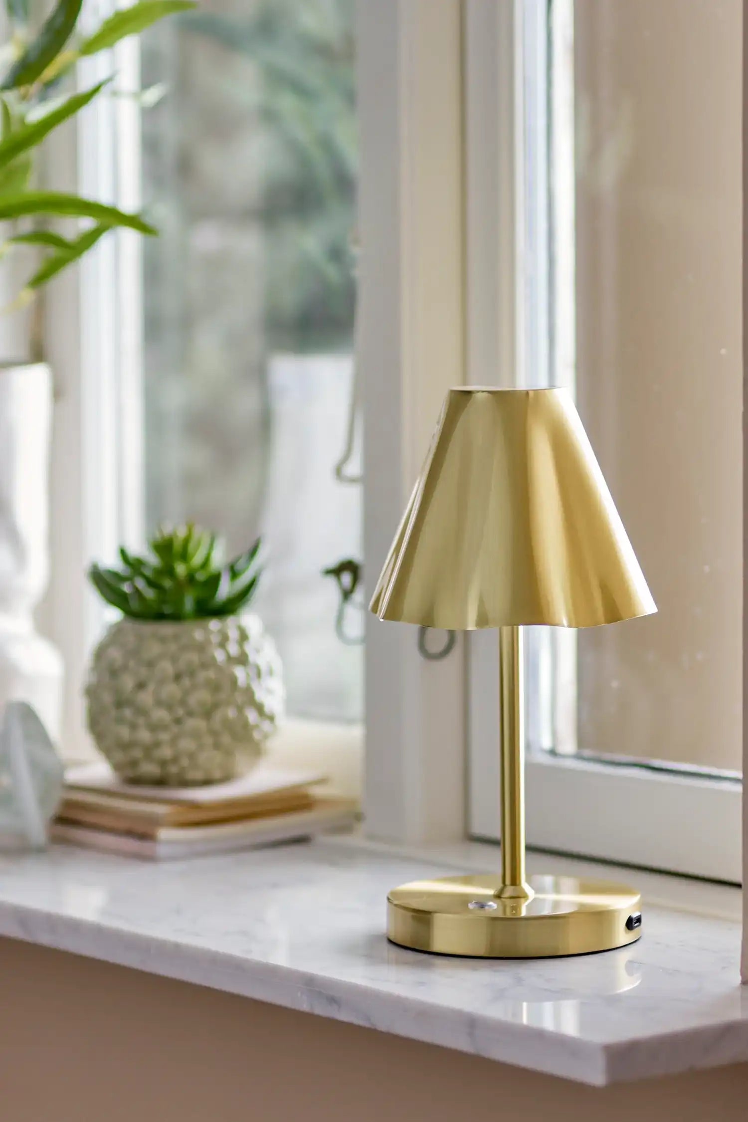 Elegante Details & praktisches Material: Diese Lampe ist aus robustem Metall gefertigt und mit wunderschönem Messing veredelt, was ihr einen luxuriösen und zeitlosen Charakter verleiht. Der gewellte Schirm sorgt für stimmungsvolles Licht und das kompakte Format (13,5 x 28 x 15 cm) macht sie perfekt für eine kleine Ecke oder als Blickfang im Bücherregal. Außerdem ist die Lampe mit dem mitgelieferten Kabel wiederaufladbar, sodass du immer flexibles Licht genießen kannst – ganz ohne ständig nach einer Steckdose suchen zu müssen.