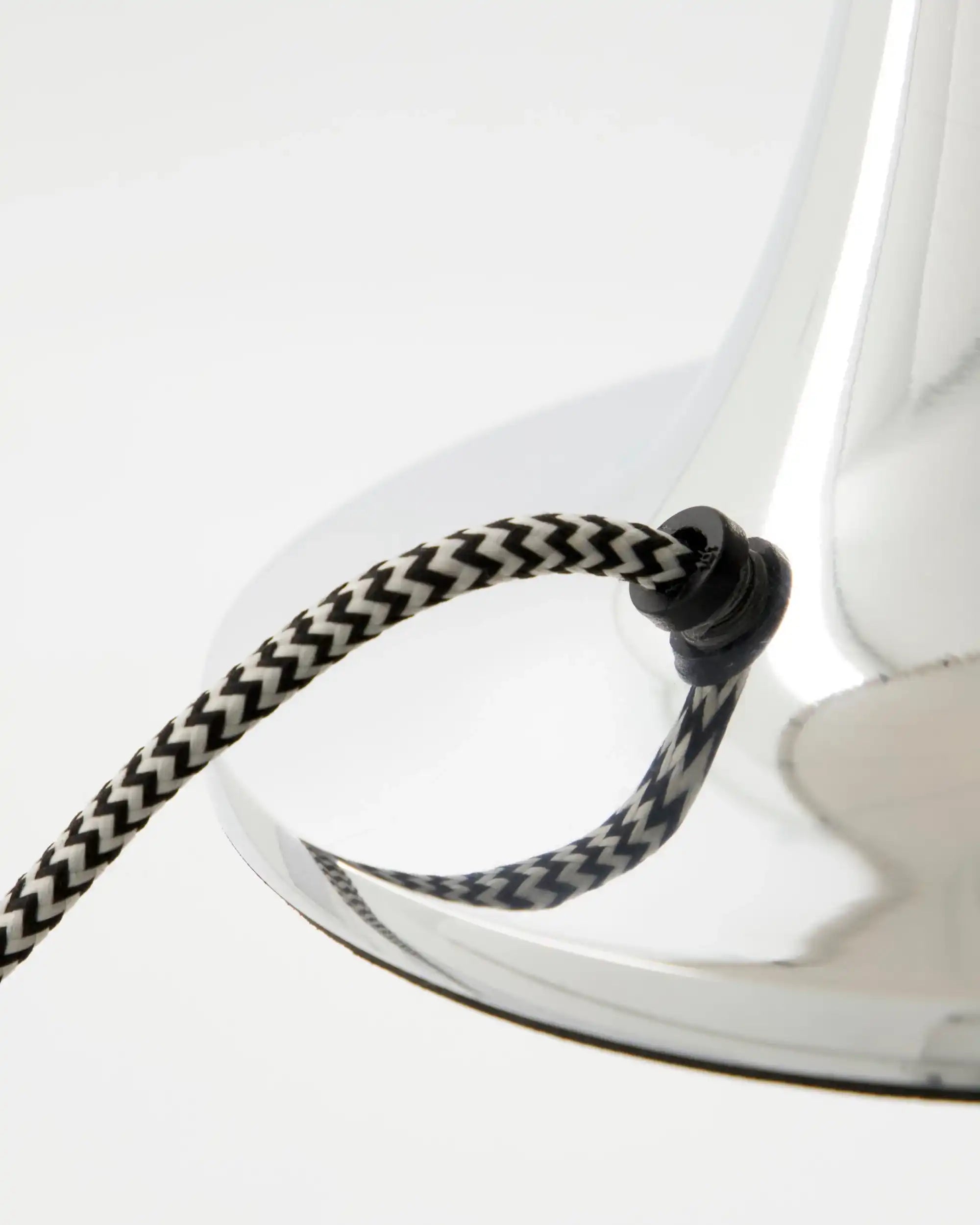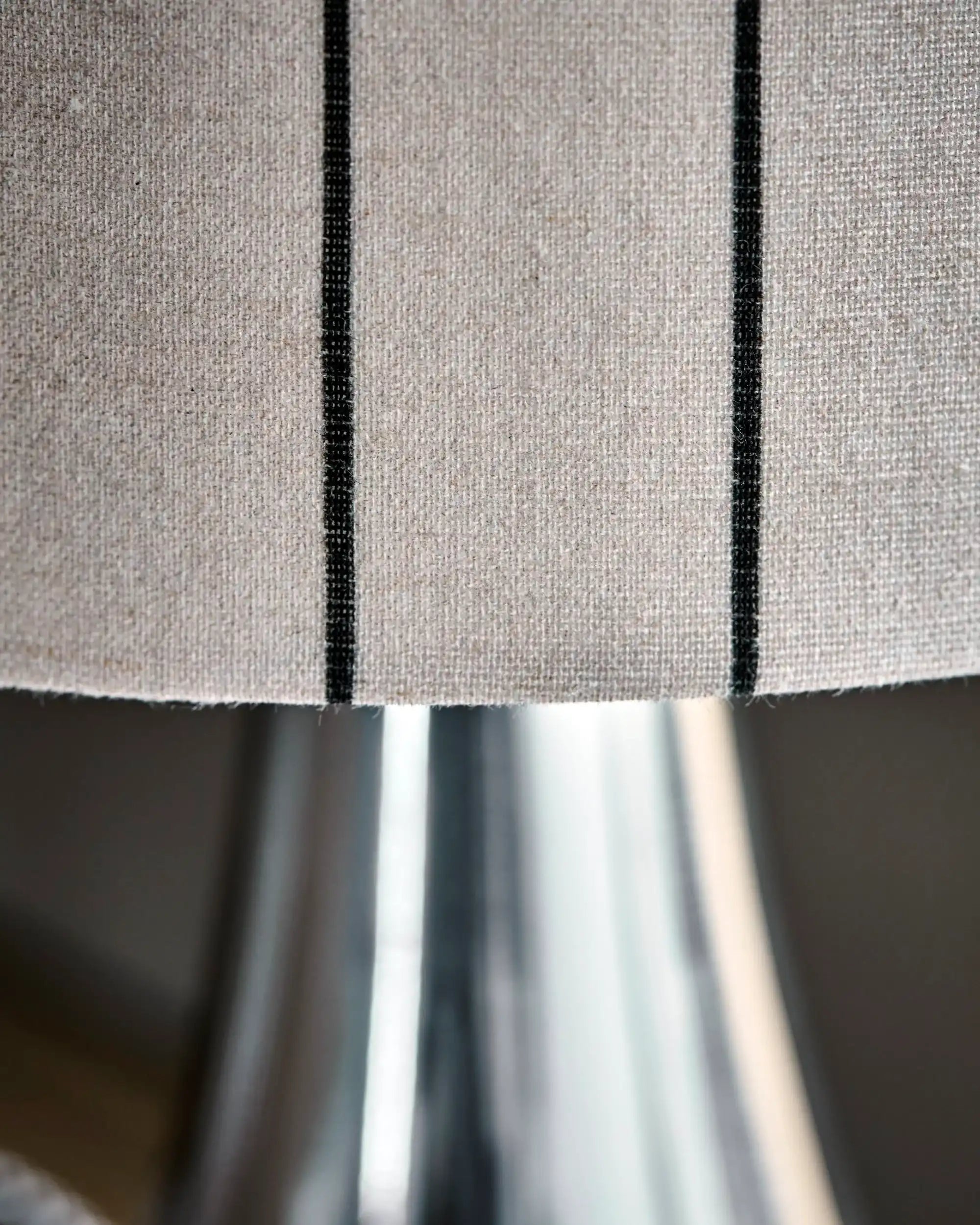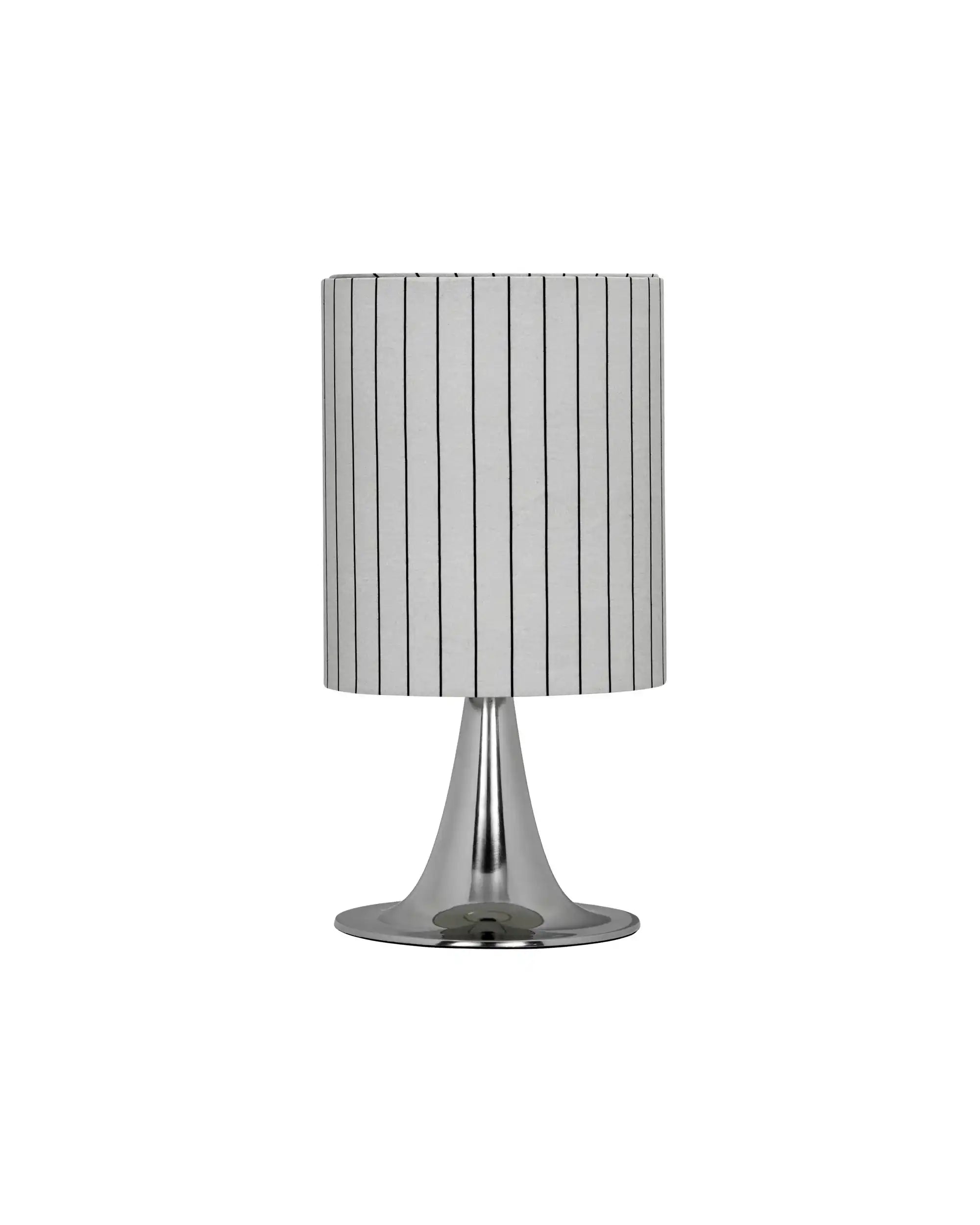 Die Tulip tafellamp zieht sofort alle Blicke auf sich mit ihrem eleganten, tulpenförmigen Fuß aus glänzendem Aluminium in silberner Ausführung. Der Lampenschirm aus Baumwolle mit dezenten schwarzen Streifen sorgt für eine warme, stimmungsvolle Lichtverteilung. Ein stilvoller Blickfang, der jedem Interieur – von modern bis klassisch – mühelos Atmosphäre und Persönlichkeit verleiht. Perfekt für die Kommode, den Nachttisch oder den Schreibtisch.