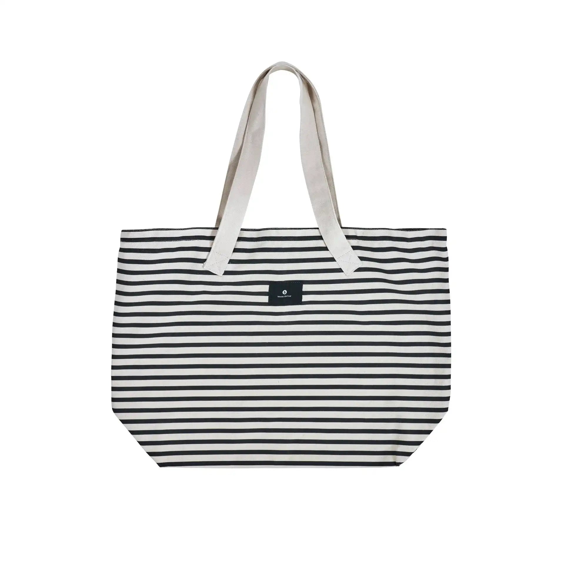 Egal, ob du einen Tag am Strand planst, einkaufen gehst oder ein Wochenende verreist – diese stilvolle Canvas-Tasche ist dein zuverlässiger Begleiter. Die zeitlose Farbkombination aus Schwarz und Off-White sorgt für einen ruhigen, modernen Look, der sich leicht mit deinem Outfit kombinieren lässt.