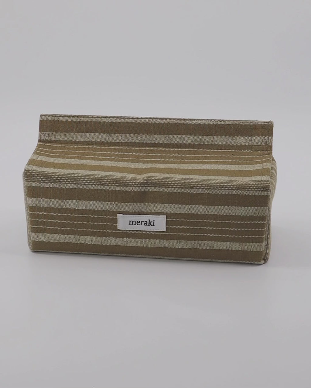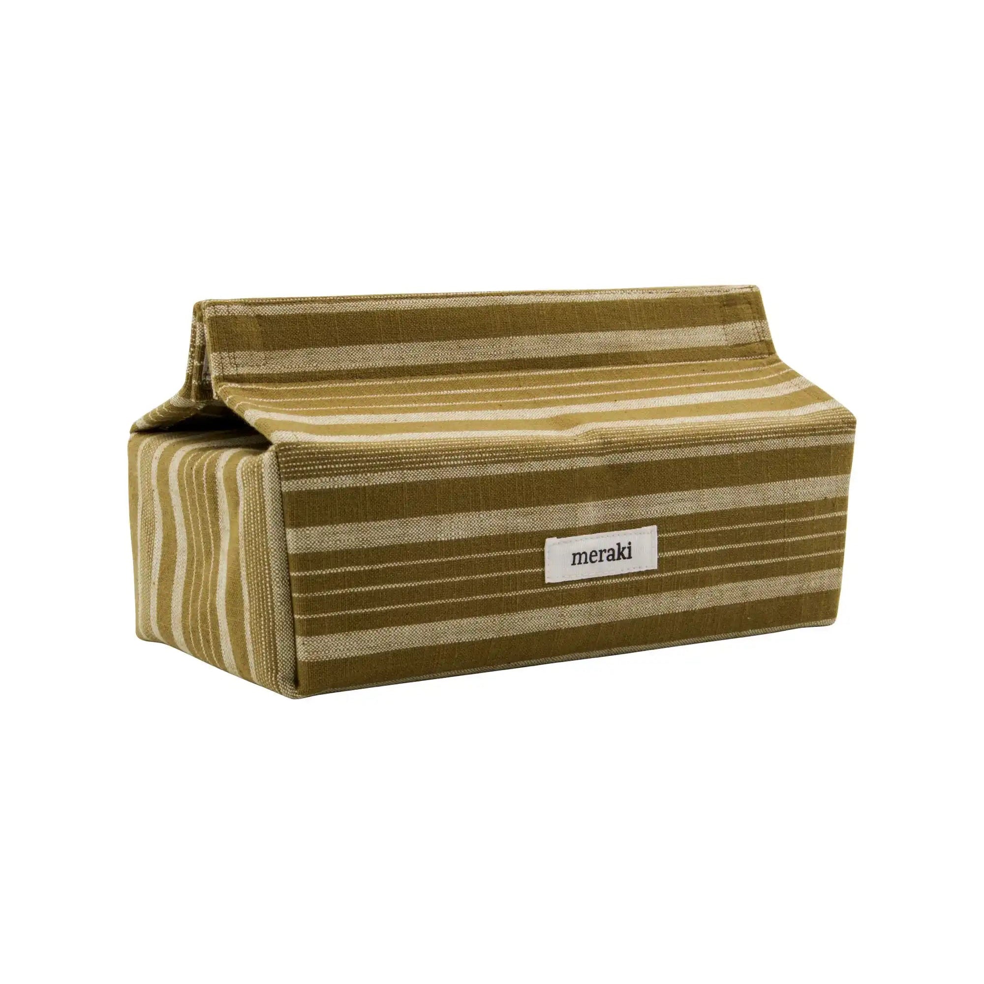 Füge deinem Interieur eine ruhige Note hinzu mit dem Tissuehalter in Dunkeloliv von Meraki. Die weiche Baumwolle und das Futter aus robustem Polypropylen sorgen gemeinsam für Komfort und Formstabilität. Die feinen, garngefärbten Streifen in Dunkelgrün und Beige verleihen diesem Halter eine dezente Ausstrahlung, die überall für Ruhe sorgt – vom Schlafzimmer bis zum Badezimmer.