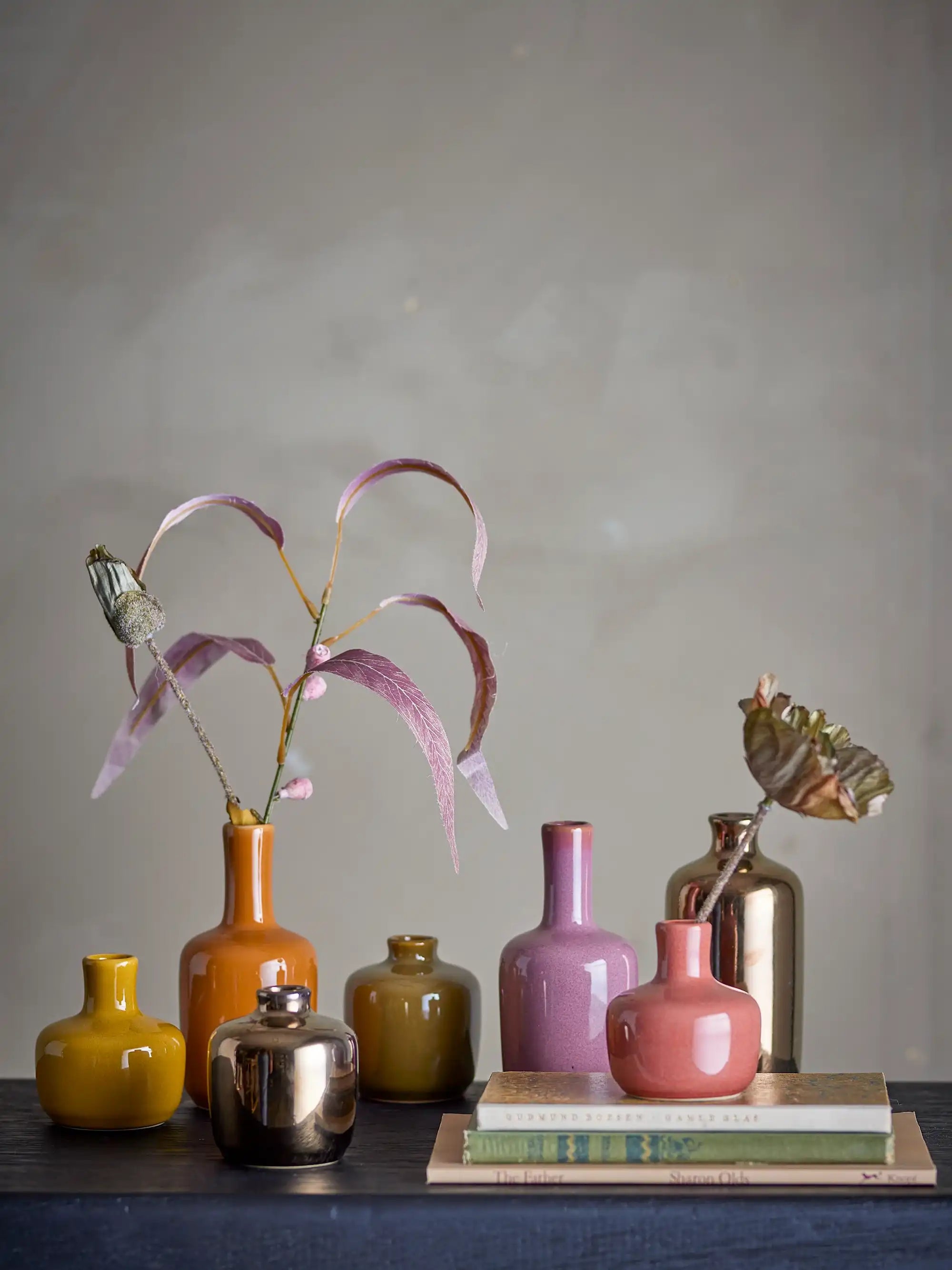 Warum du diese Vase haben möchtest: Suchst du nach einer verspielten und stilvollen Möglichkeit, dein Interieur zu bereichern? Dieses Set aus sieben kleinen braunen Keramikvasen aus der Maien-Serie bringt mühelos Wärme und Charakter in dein Zuhause. Die Vielfalt an Farbtönen macht jeden Blick darauf überraschend und einladend.