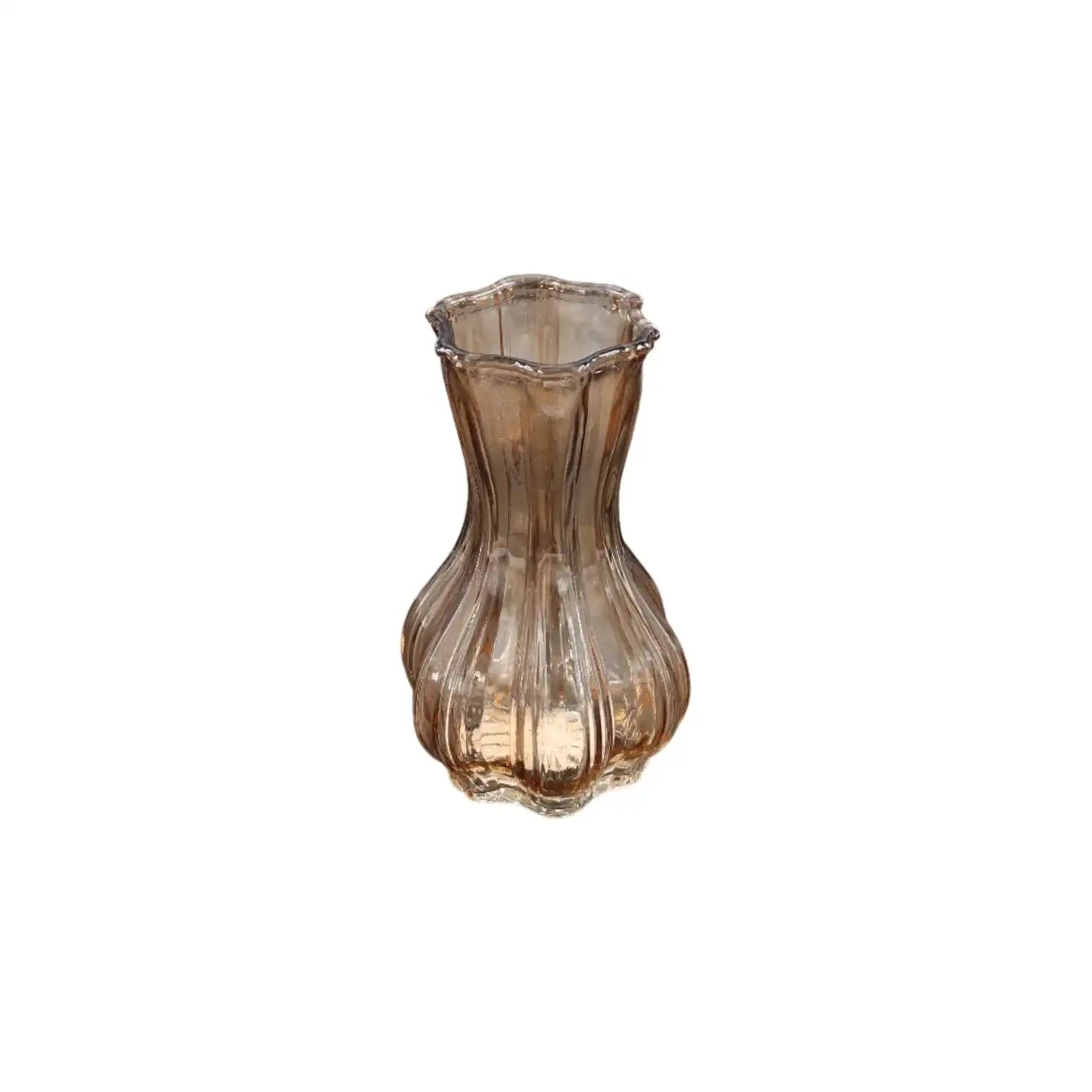 Die Vaas Flin Fion beige ist eine charmante Ergänzung für dein Interieur. Mit ihrem sanften Beigeton und der eleganten, geschwungenen Form strahlt diese kleine Vase Ruhe und Eleganz aus. Die feine Rillenstruktur im Glas sorgt für ein dezentes Lichtspiel, wodurch die Vase eine warme und luxuriöse Ausstrahlung erhält – perfekt als stimmungsvolles Detail auf dem Tisch, der Fensterbank oder dem Regal.