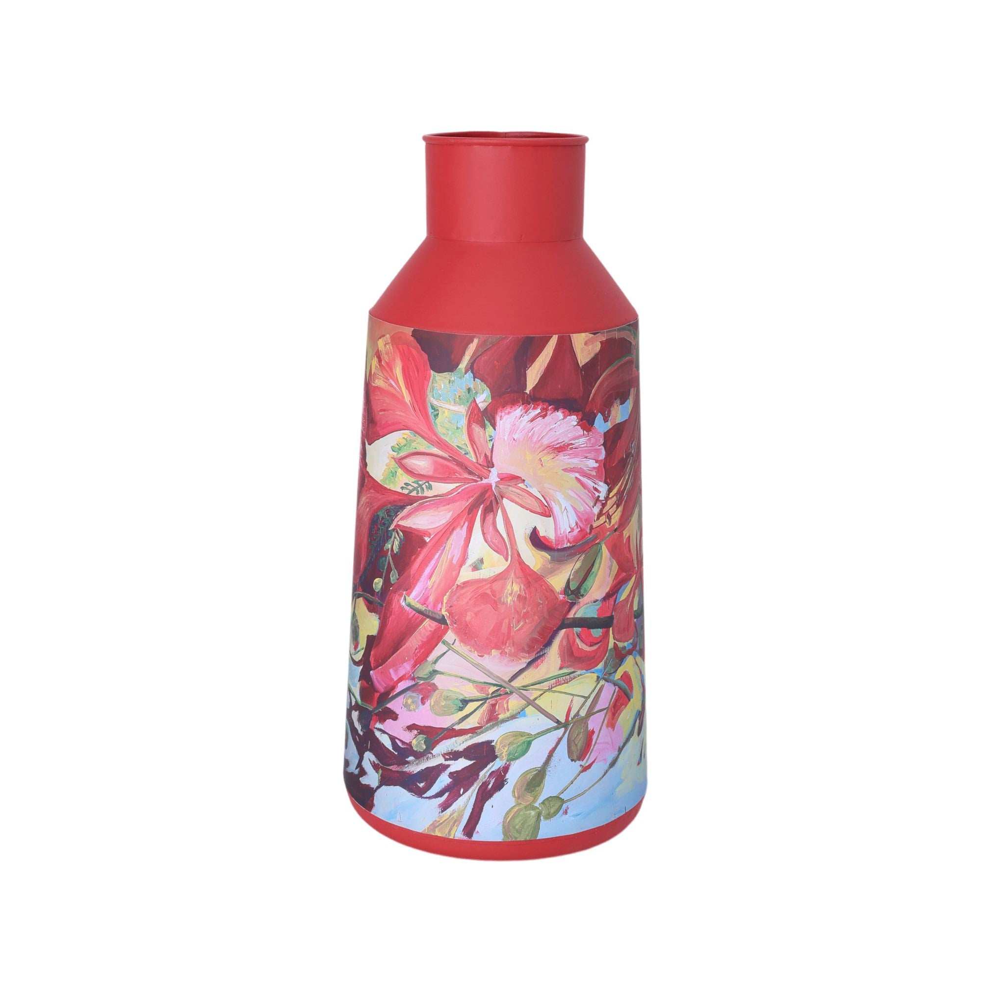 Gefertigt aus robustem Metall und versehen mit einem lebendigen Blumenmuster auf rotem Hintergrund, ist diese Vase ein echter Blickfang. Mit einer Höhe von 37 cm und einem Durchmesser von 18 cm ist das Format ideal für mittelgroße Blumenarrangements oder als eigenständiges Kunstobjekt. Das glänzende Finish und das dynamische Design bringen eine sommerliche und exklusive Atmosphäre in jedes Interieur.