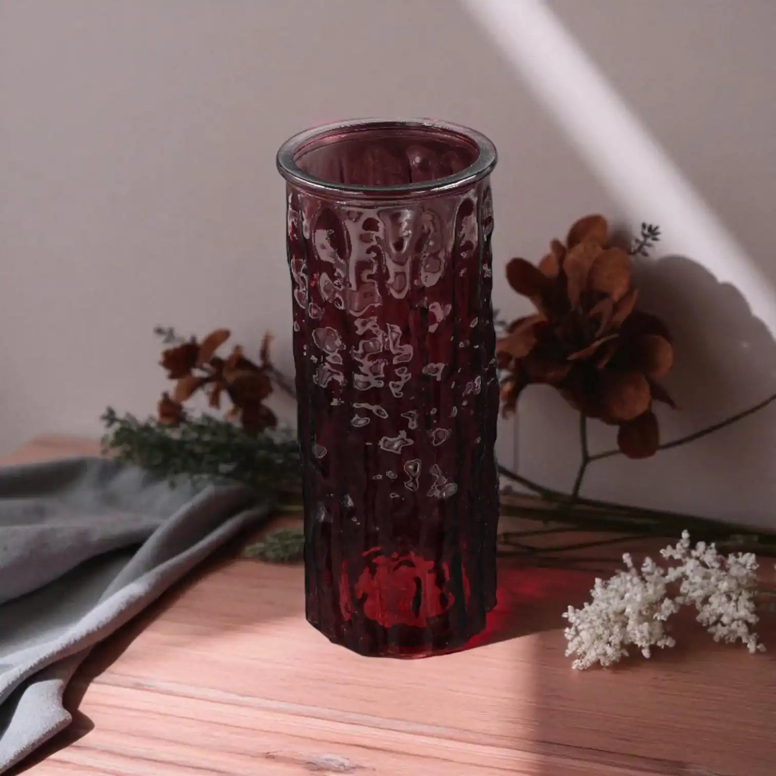 Mit ihrer Höhe von 20 cm und einem Durchmesser von 8 cm ist die Vaas Juliëtte perfekt geeignet für ein paar einzelne Blumen, einen Zweig oder ein schlichtes Trockenblumenarrangement. Die dunkle Farbe bildet einen stilvollen Kontrast zu hellen Tönen und natürlichen Materialien und macht sie so zu einem dezenten Blickfang auf dem Tisch, auf der Fensterbank oder im Regal.