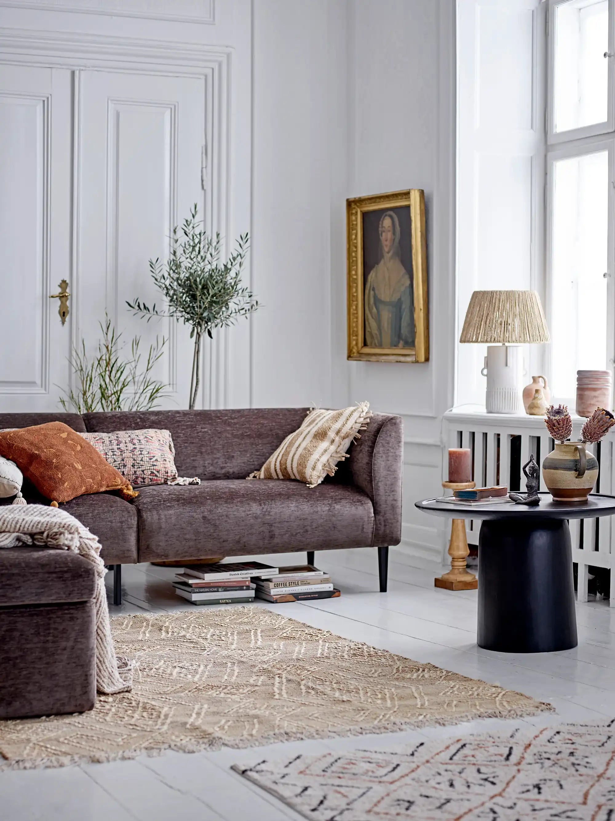 Details & Material: Der Rupen Teppich ist handgewebt aus hochwertiger Jute und Wolle, wodurch er nicht nur robust, sondern auch angenehm weich ist. Mit seinen großzügigen Maßen von 150 x 215 cm und kleinen Fransen an den Enden passt er stilvoll in verschiedene Wohn-, Ess- oder Schlafzimmer. Die Naturtöne lassen sich mühelos mit jedem skandinavischen Einrichtungsstil kombinieren, während das langlebige Material dafür sorgt, dass dein Teppich jahrelang schön bleibt.