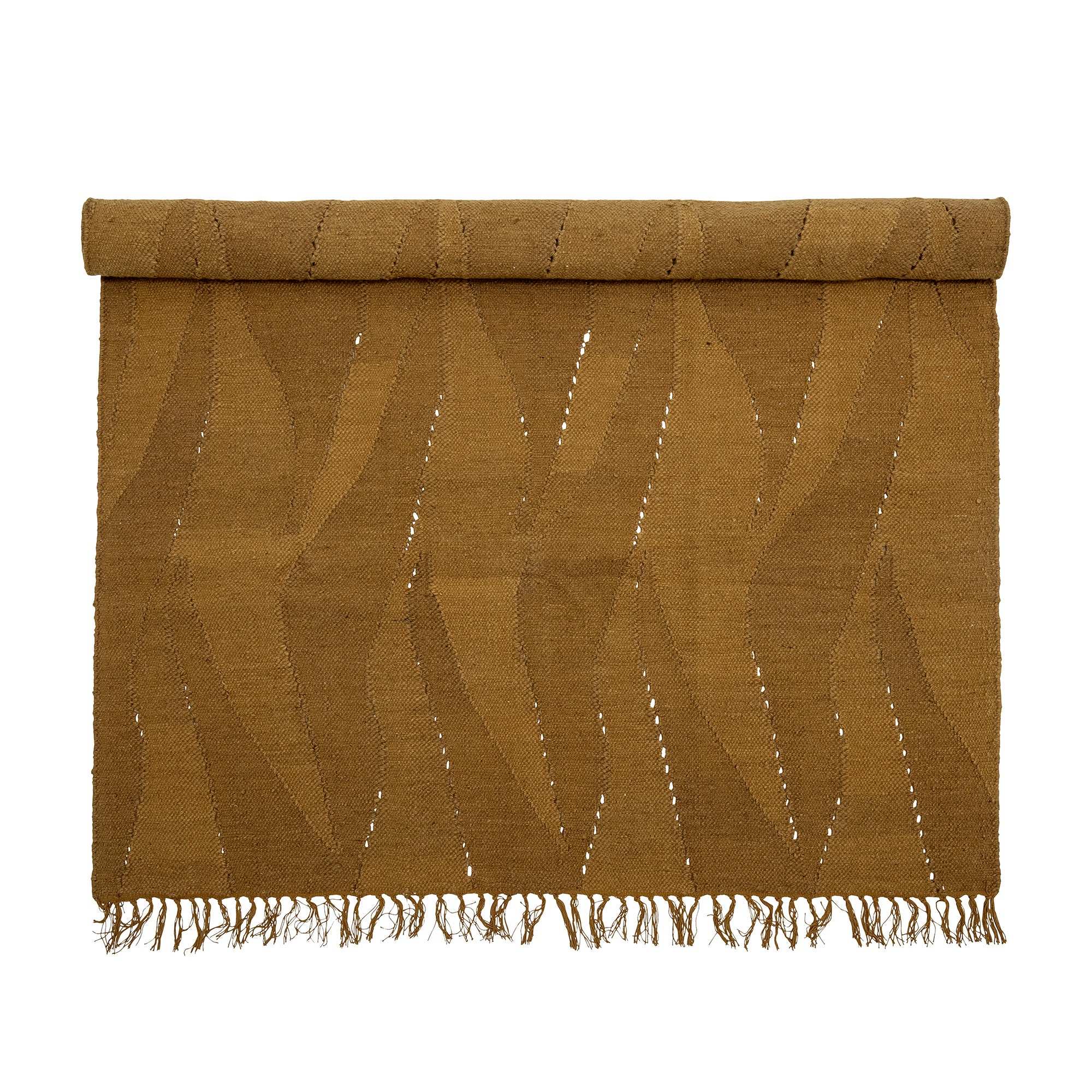 Details & Material: Dieser großzügige Teppich (140 x 200 cm) ist aus hochwertiger Wolle und Baumwolle gewebt, wodurch er wunderbar weich ist und gleichzeitig langlebig bleibt. Das grafische Muster verleiht dem Teppich einen modernen Look, während der warme Braunton sich mühelos in verschiedene Wohnstile einfügt.