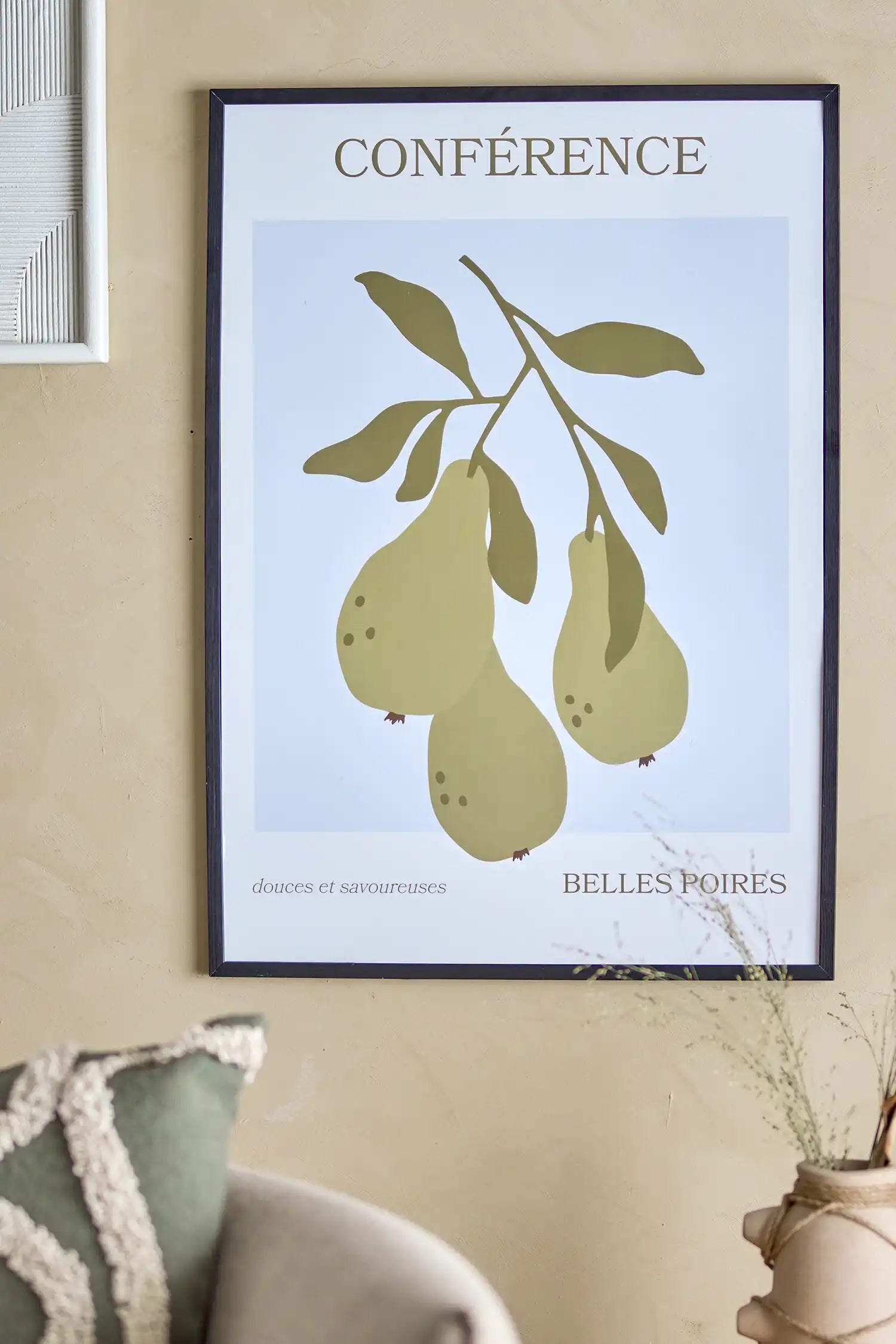 Warum du diese Wanddekoration haben möchtest: Setze ein verspieltes und stilvolles Highlight in deinem Zuhause mit dieser charmanten Illustration von Bloomingville. Die sanften Farben und das fröhliche Birnenmotiv bringen sofort Wärme und Persönlichkeit an jede Wand.