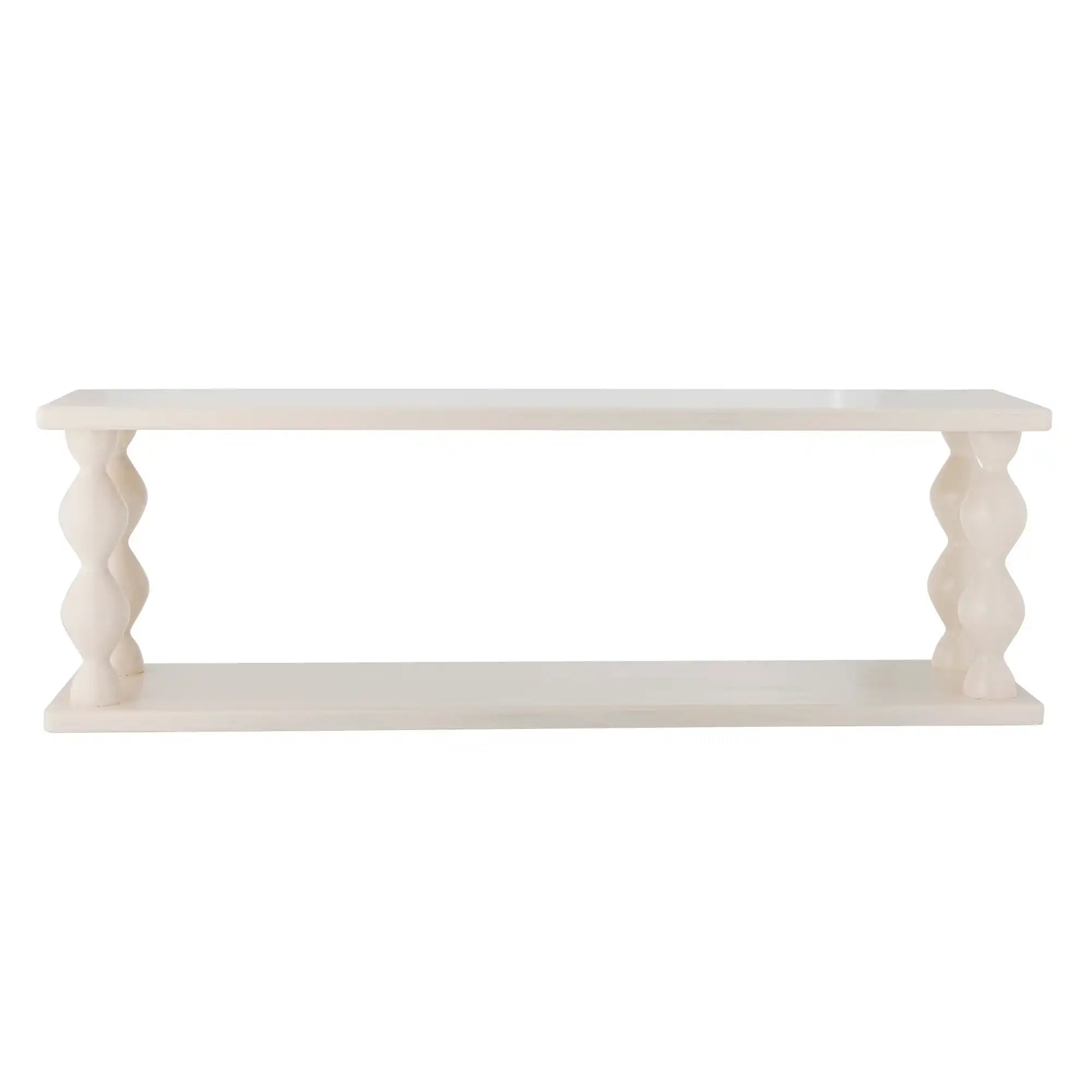 Details & Material: Das Regal ist aus robustem MDF gefertigt und hat eine frische, mattweiße Oberfläche, die sich mühelos mit modernen wie klassischen Interieurs kombinieren lässt. Mit einer Breite von 20 cm, einer Höhe von 26 cm und einer großzügigen Tiefe von 80 cm hast du viel Platz für Fotos, kleine Pflanzen oder Wohnaccessoires. Das durchdachte Design sorgt für einen funktionalen und zugleich schönen Akzent an jeder Wand.