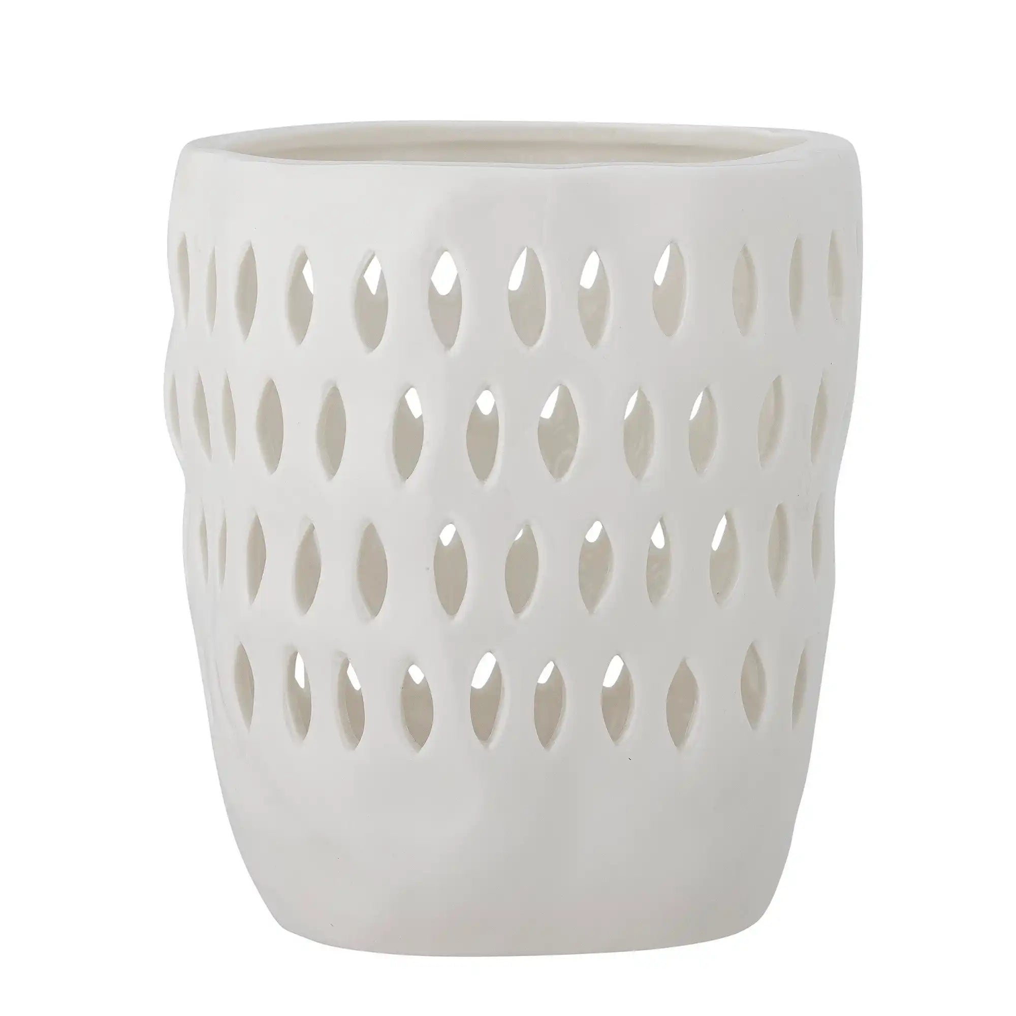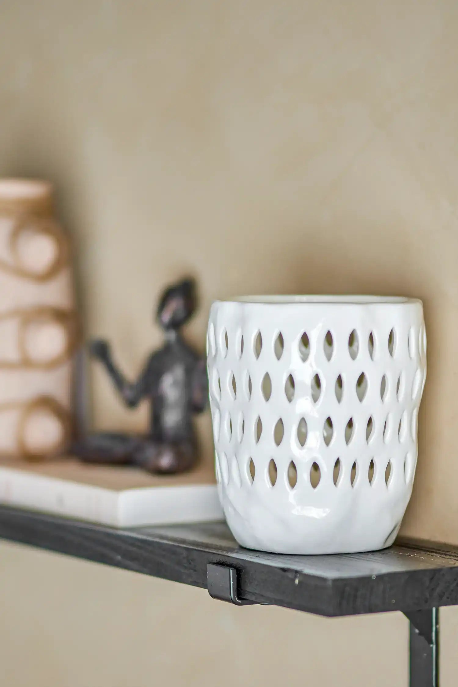 Details & Material: Dieser elegante Halter ist aus hochwertigem, weißem Steingut mit einem dezenten Glanz gefertigt. Mit seinem großzügigen Durchmesser von 14 cm und einer Höhe von 15,5 cm eignet er sich perfekt für den Wohn- oder Esstisch. Der handwerkliche Charakter des Materials und der Verarbeitung sorgt für eine zeitlose Ausstrahlung, passend zu jedem skandinavischen Wohnstil.