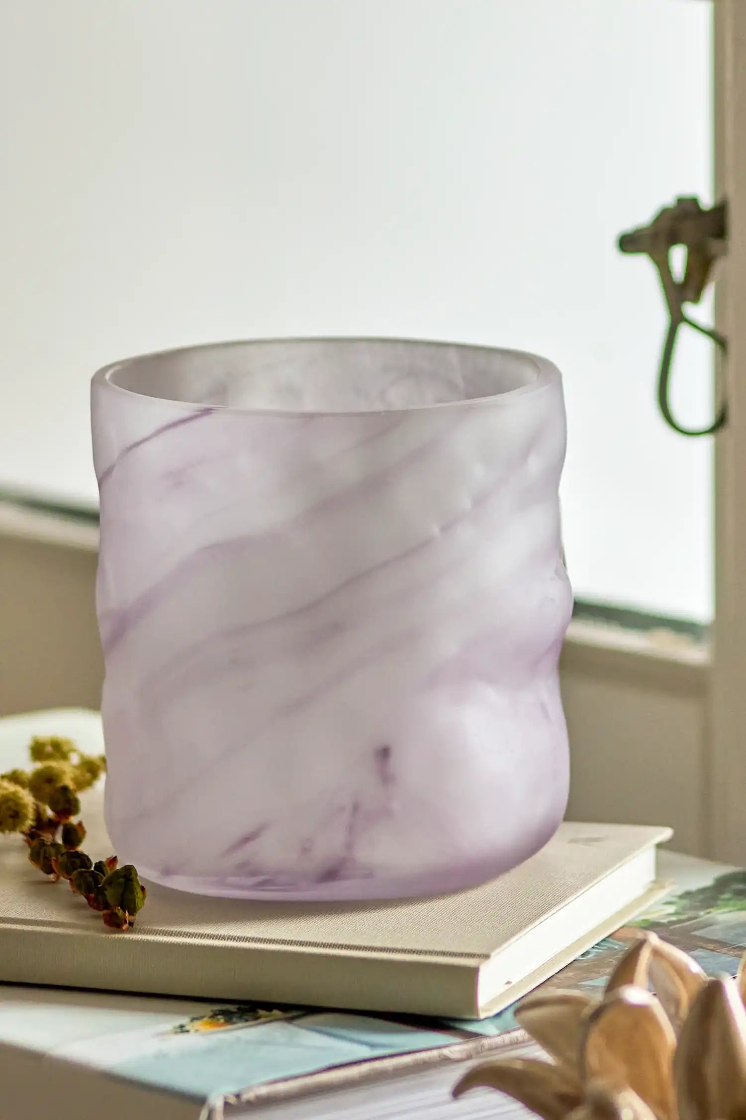 Warum du dieses Produkt haben möchtest: Schaffe sofort eine warme und luxuriöse Atmosphäre in deinem Zuhause mit diesem lilafarbenen Teelichthalter. Das subtile Marmormuster im Glas sorgt für einen stilvollen Blickfang auf dem Tisch, dem Sideboard oder der Fensterbank.