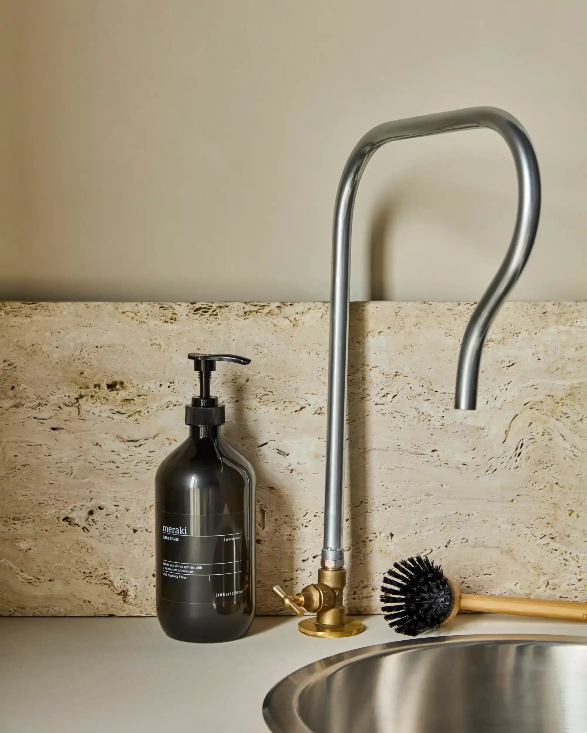 Tip: Place the bottle next to your sink on a tray or shelf together with a hand soap and a cloth – this way, you create a well-organized spot for washing up and stay true to your kitchen’s minimalist style.
