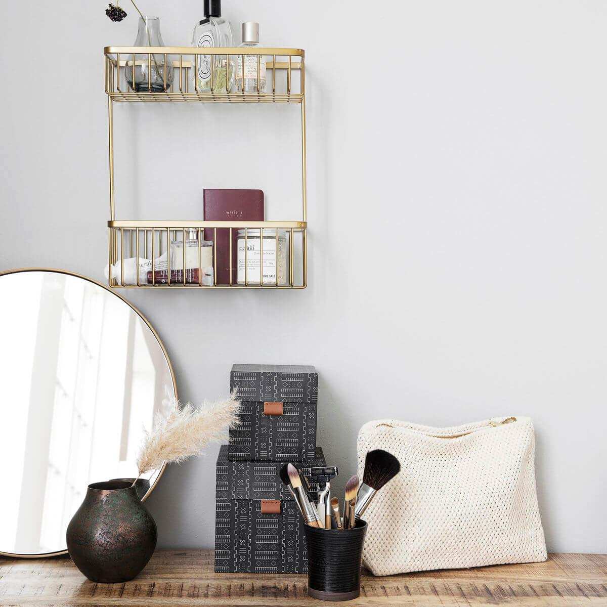 The House Doctor wall shelf Bath Double is an elegant and practical storage solution for your bathroom. This shelf, with its double baskets, offers enough space to store all your care products, such as shampoo and conditioner, neatly and clearly.