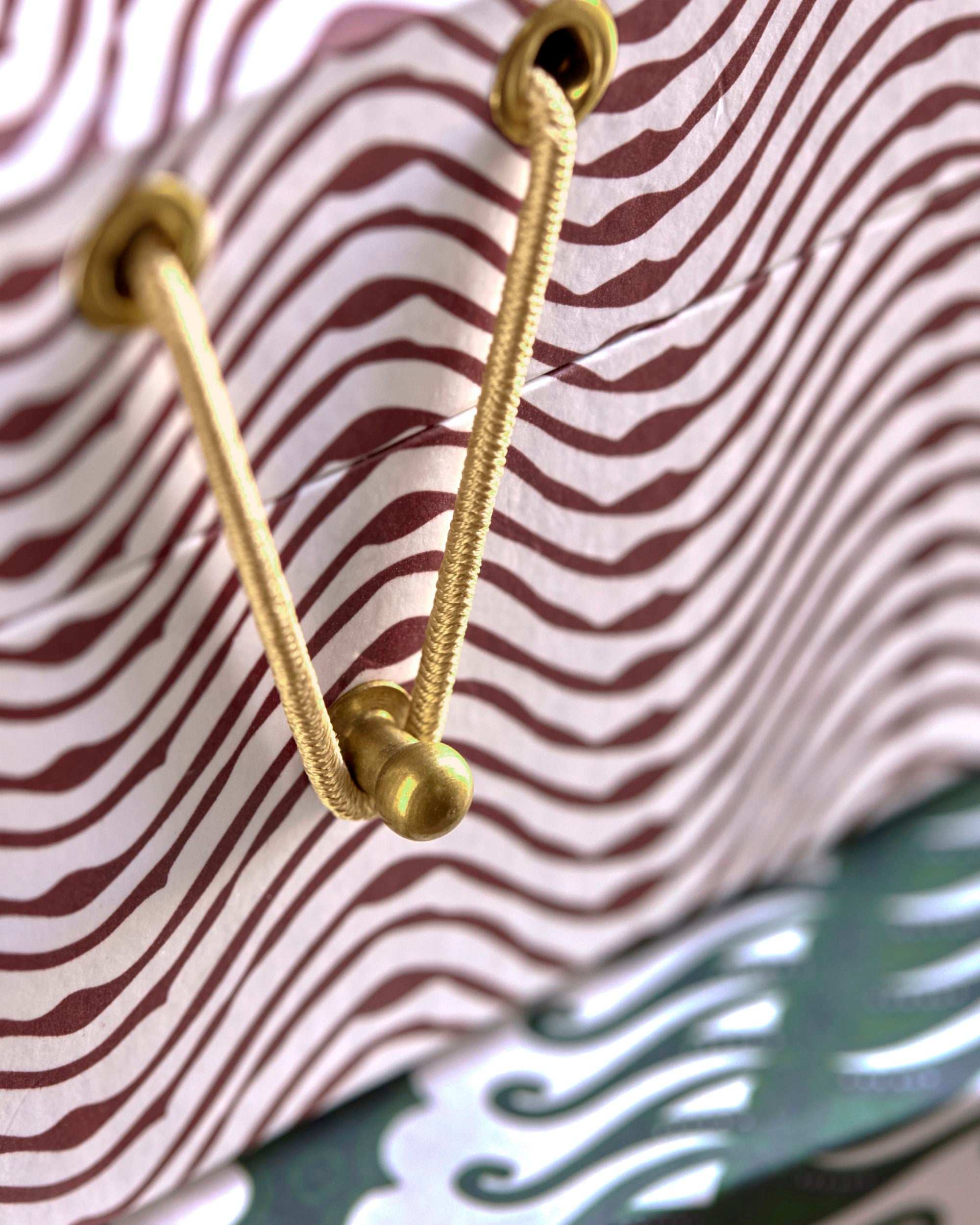 The playful green and red patterns give your interior instant character, while the elegant closure with gold-coloured button and elastic adds a chic touch. The plain interior also provides peace and clarity.