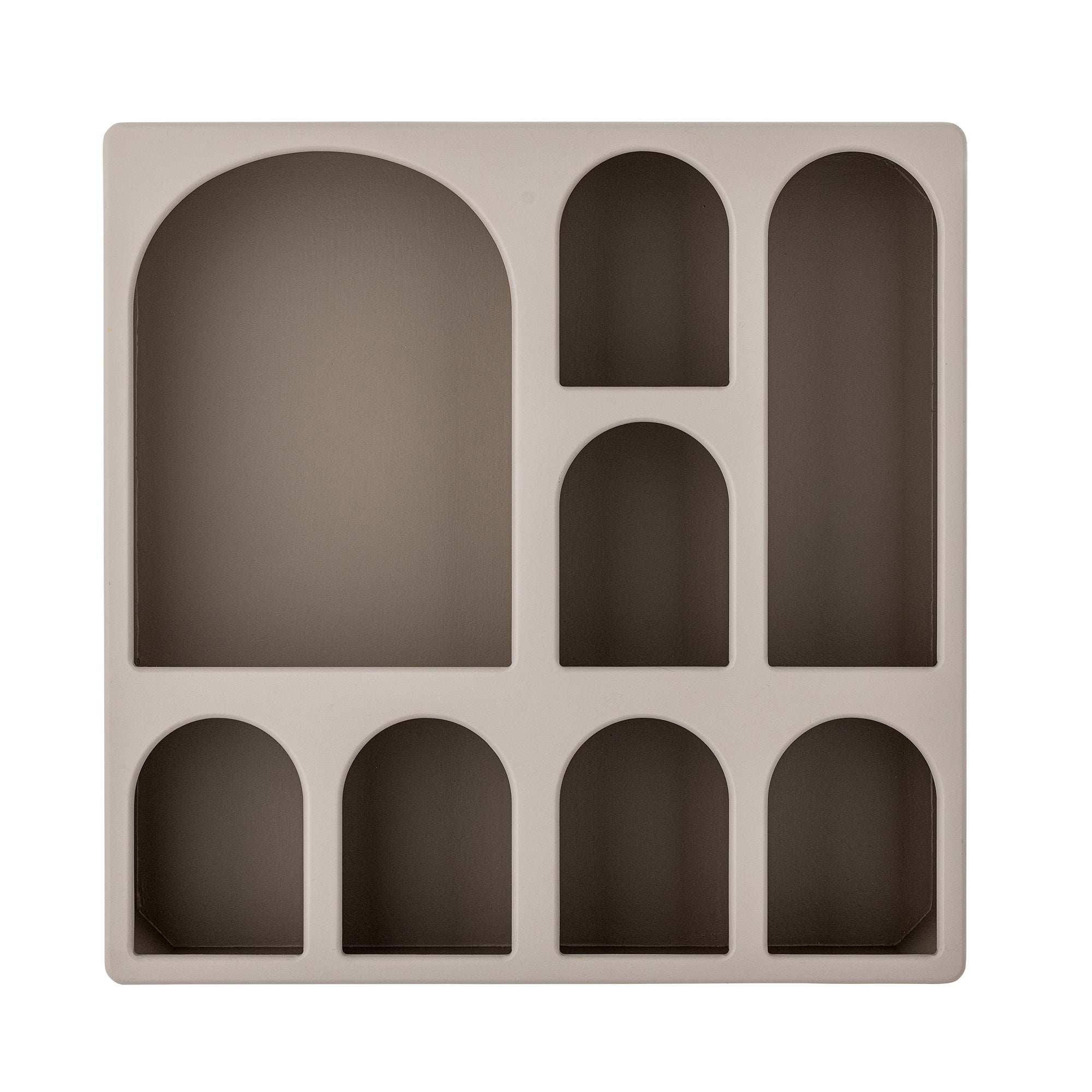 The Graphia wall shelf instantly adds ambiance to your interior with its modern, Scandinavian design and warm brown hue. The playful lines and varying compartment sizes give each item—whether books, art objects, or souvenirs—its own unique space on the wall.