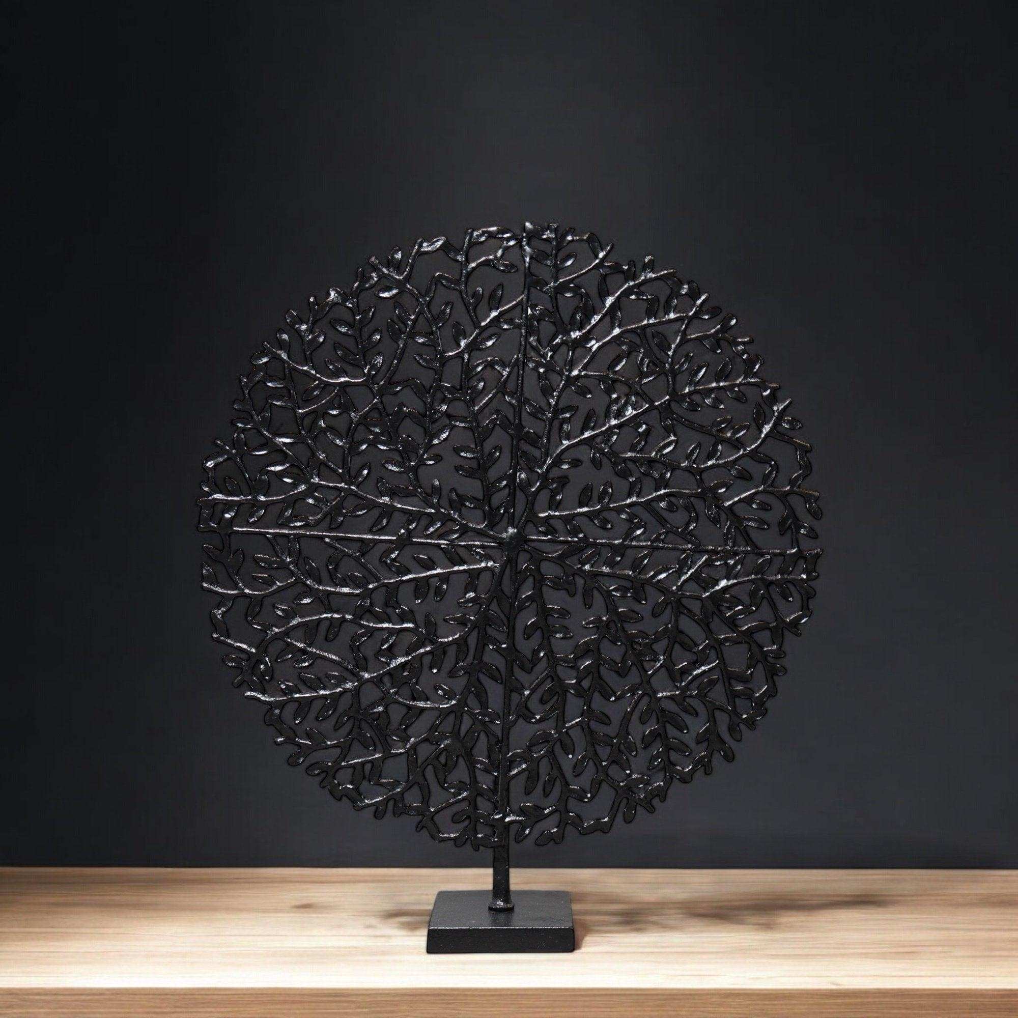 The Mansion Atmosphere Tree ornament black 70cm is a unique, handmade decoration that will add an artistic touch to any room. This striking ornament is made of cast aluminum and is designed to create an elegant and modern atmosphere in your home. Due to the craftsmanship, each piece is unique, which means that the ornament is not always completely straight or even. This only adds to the unique charm and character of the design. At 70 cm high and 61 cm wide, this is an impressive addition to any interior, ideal for placing in front of a window or on a sideboard.