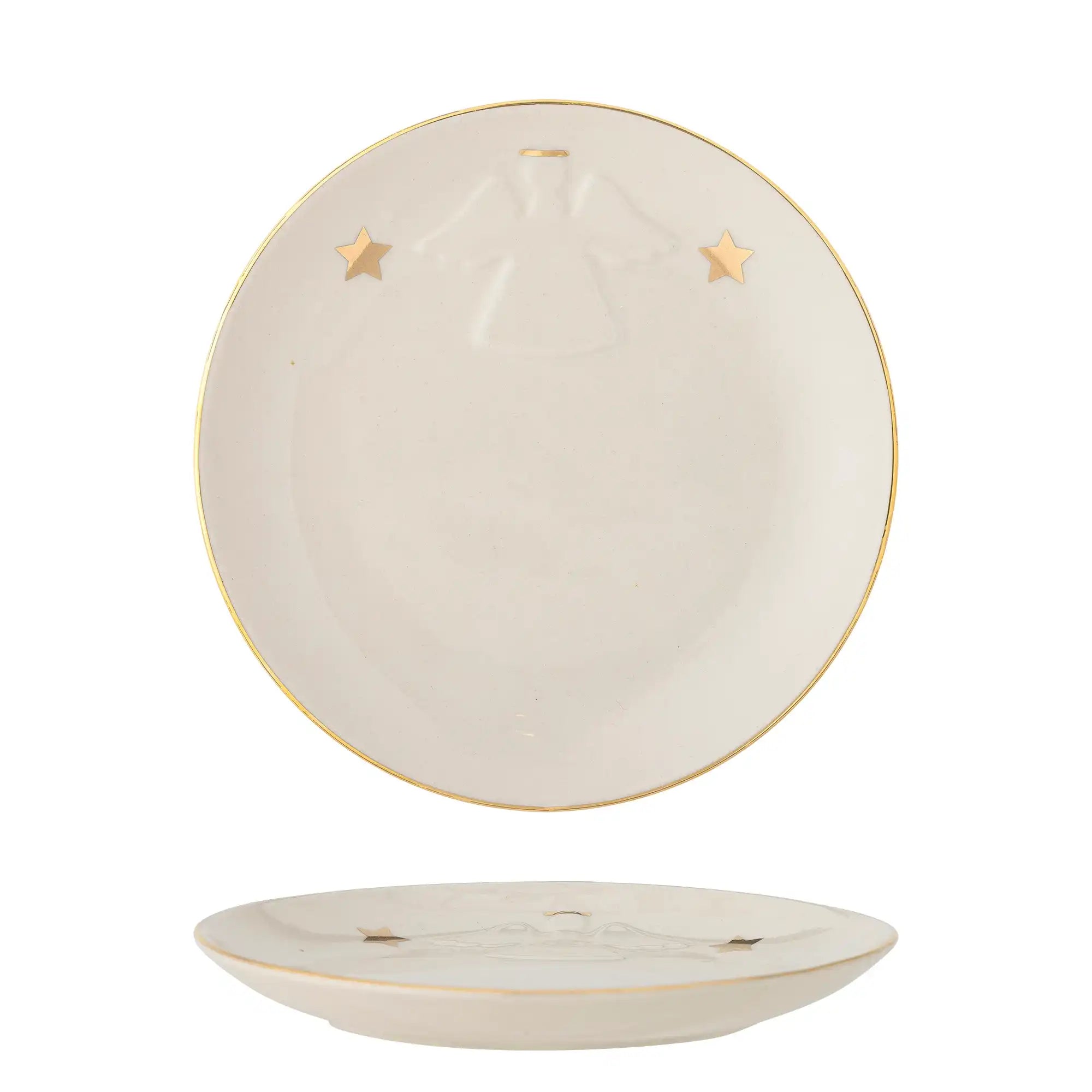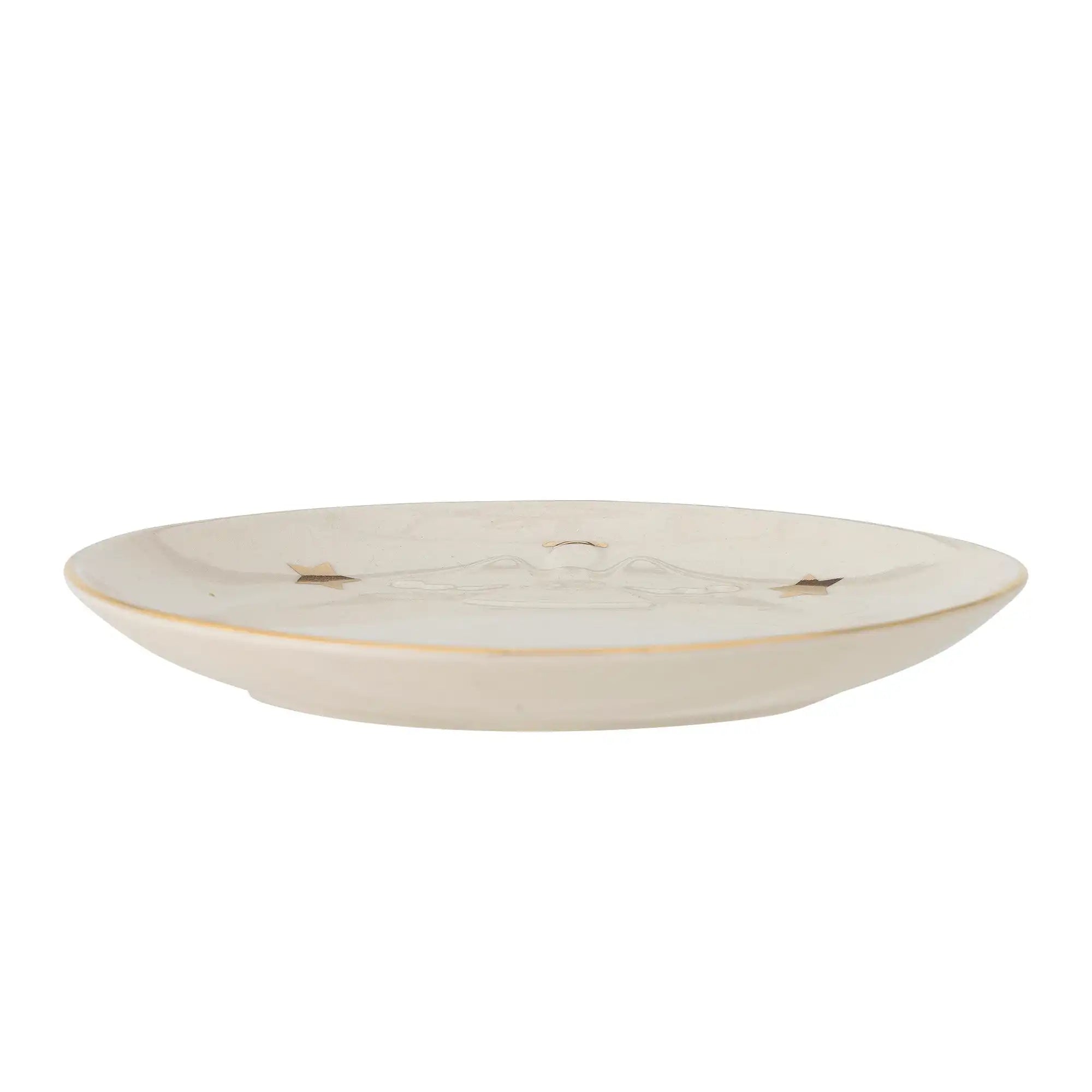 Details & Material: The Bloomingville Starry plate is crafted from high-quality stoneware and stands out with its elegant white finish and glossy gold rim. With a diameter of 16 cm, it's ideal as a cake plate, for small appetizers, desserts, or as a charming decorative piece during the holidays.