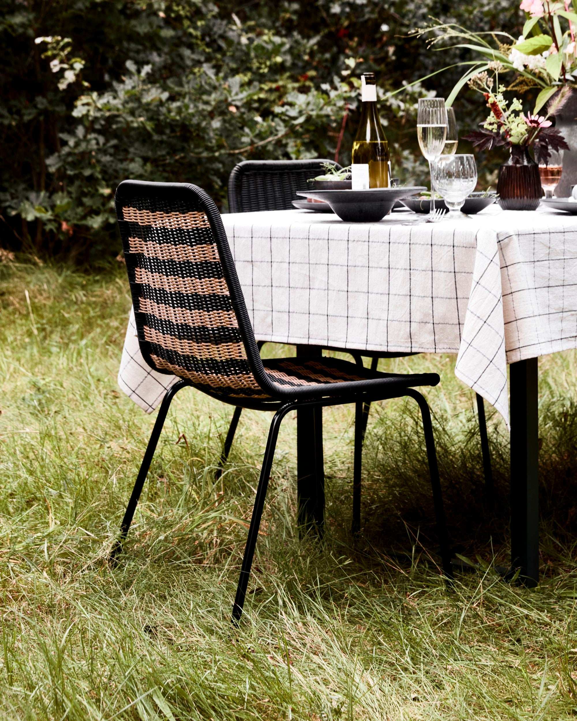 Sleek, stylish and surprisingly versatile: the Hapur armless chair from House Doctor is a perfect mix of modern simplicity and natural charm . Thanks to the airy design with braided polyethylene in black and natural, you can effortlessly create a contemporary, warm atmosphere – both indoors and outdoors.